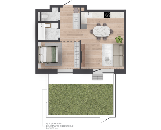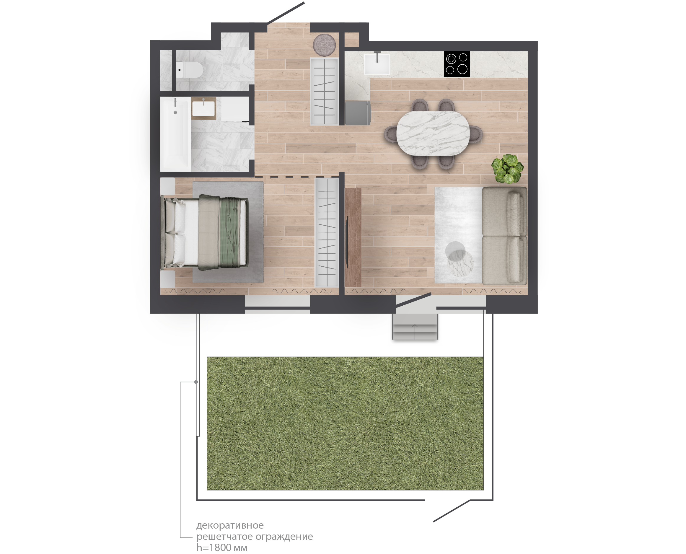 Участки от 16 до 38 квадратных метров дают возможность реализовать множество идей, от создания цветников до установки зон для отдыха с беседками или шезлонгами. Участки приподняты на 0,5 метра над уровнем территории двора и обнесены металлическим ограждением;