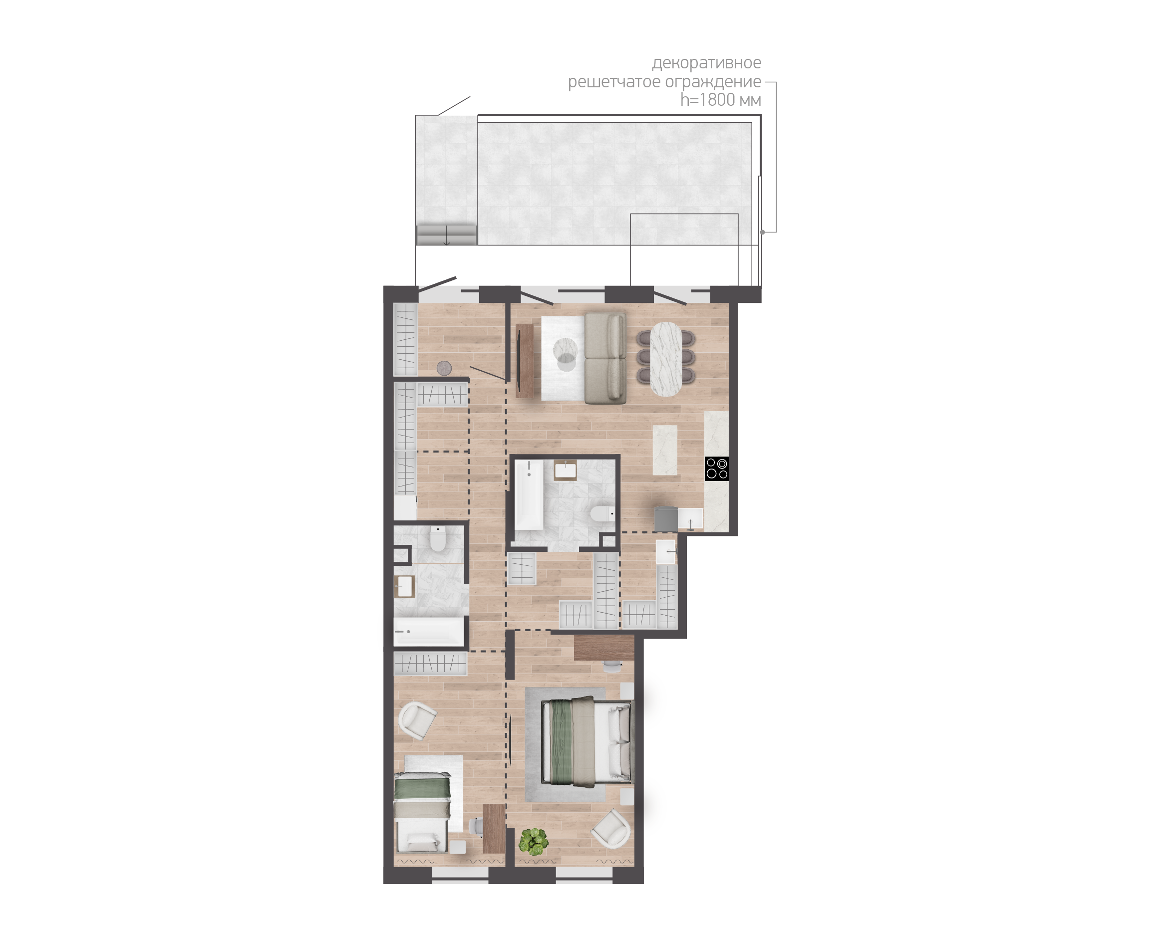 Обязательная покупка при приобретении квартирыУчастки обнесены ограждением, что создает атмосферу уединения и защищенности. Это особенно важно для семей с детьми и домашних животных, позволяя не беспокоиться о посторонних;