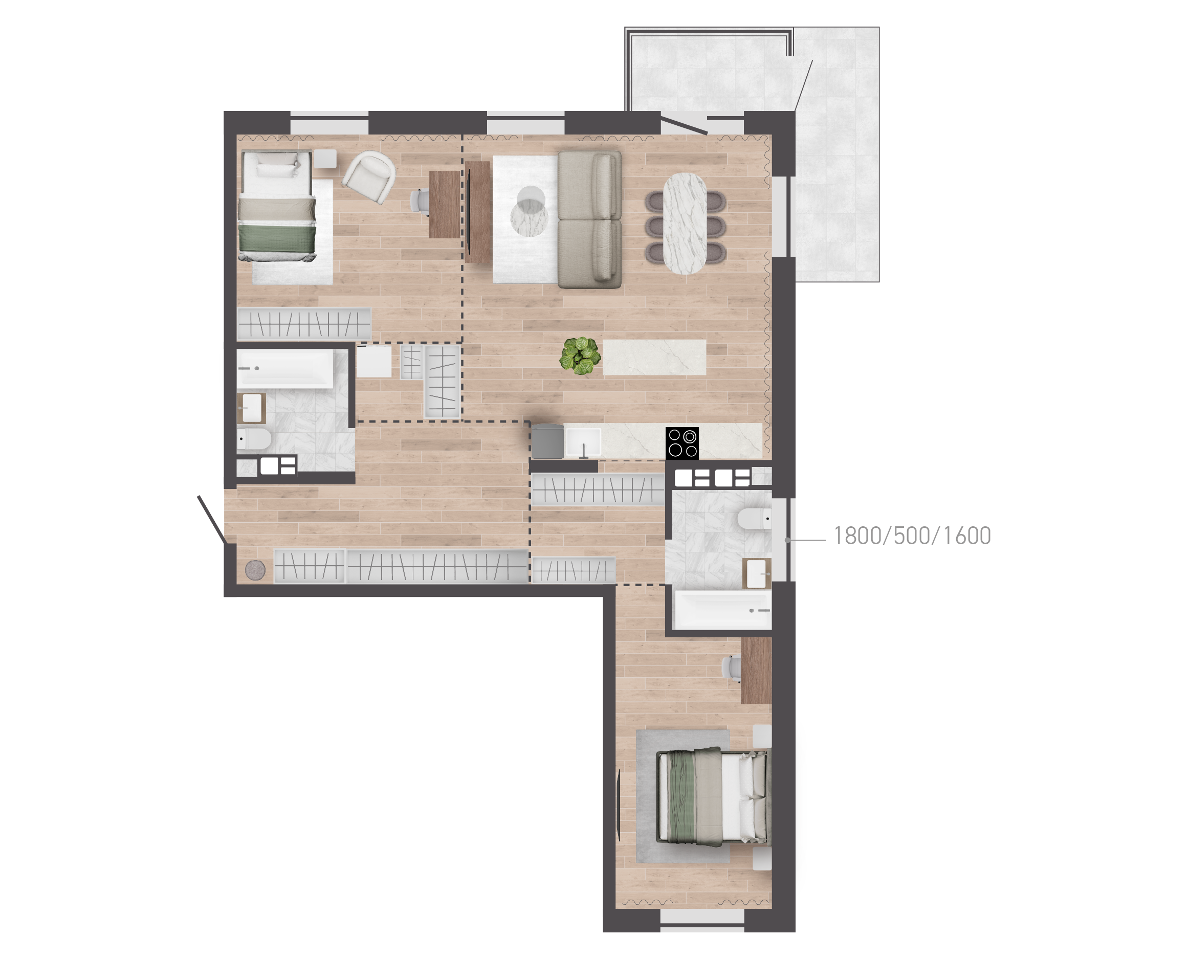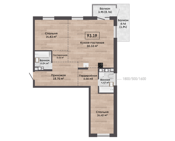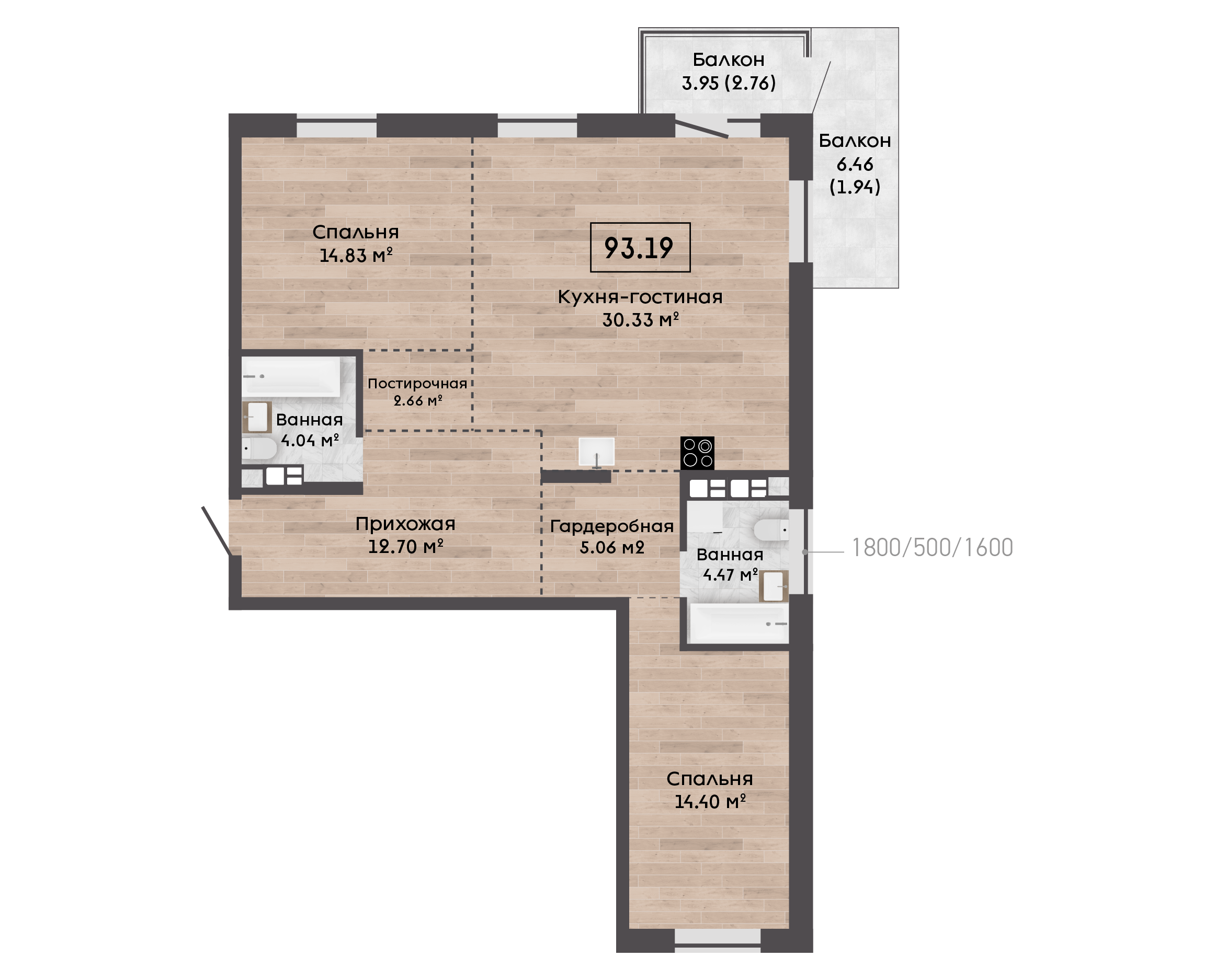 | 93,19 м² Площадь квартиры | 2,72 м Высота потолков | 500 мм Высота подоконной части |