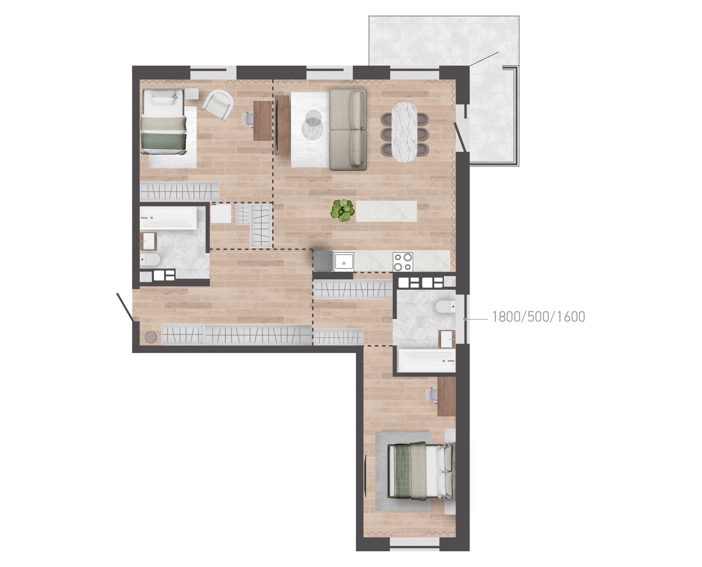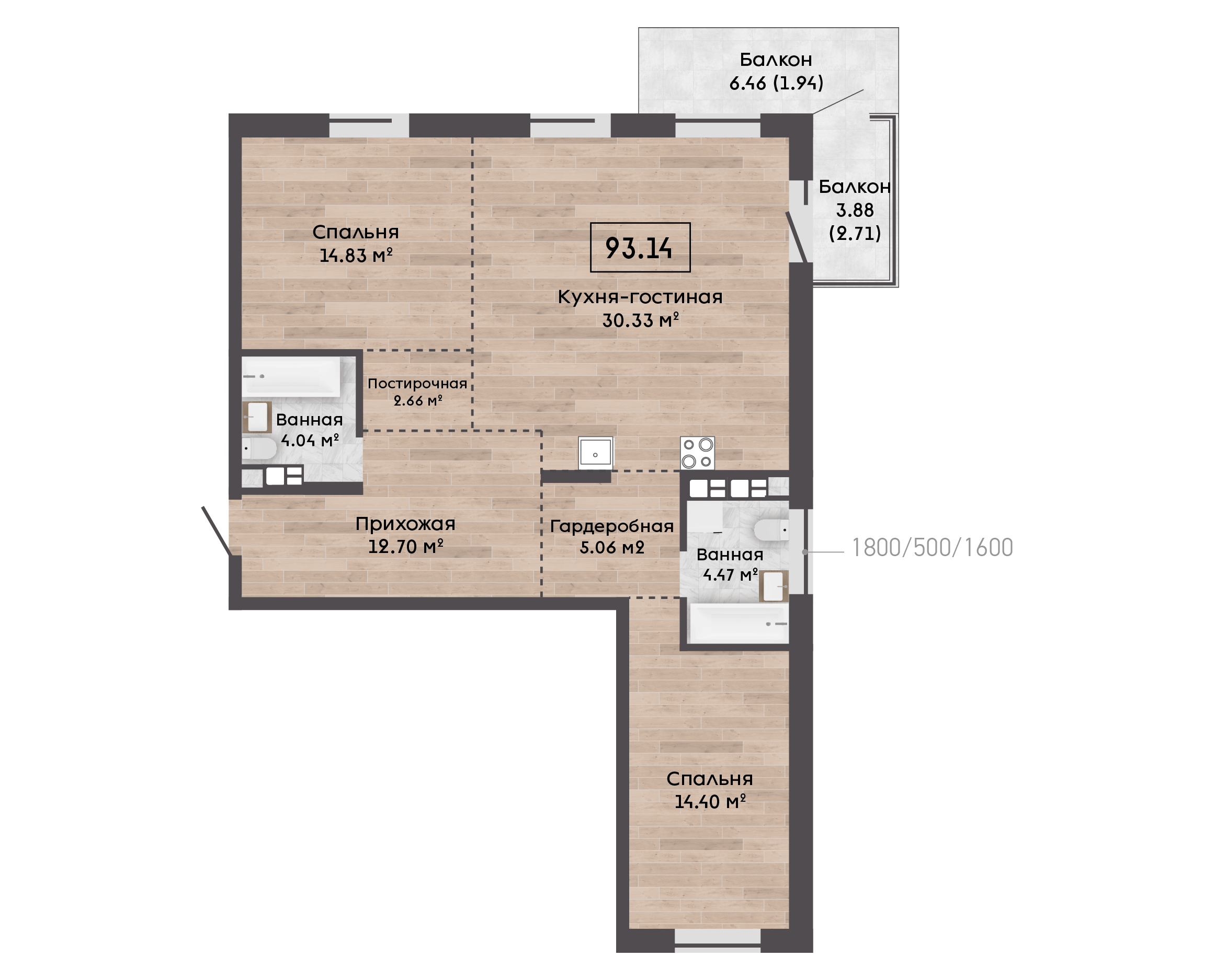 | 93,14 м² Площадь квартиры | 2,72 м Высота потолков | 500 мм Высота подоконной части |