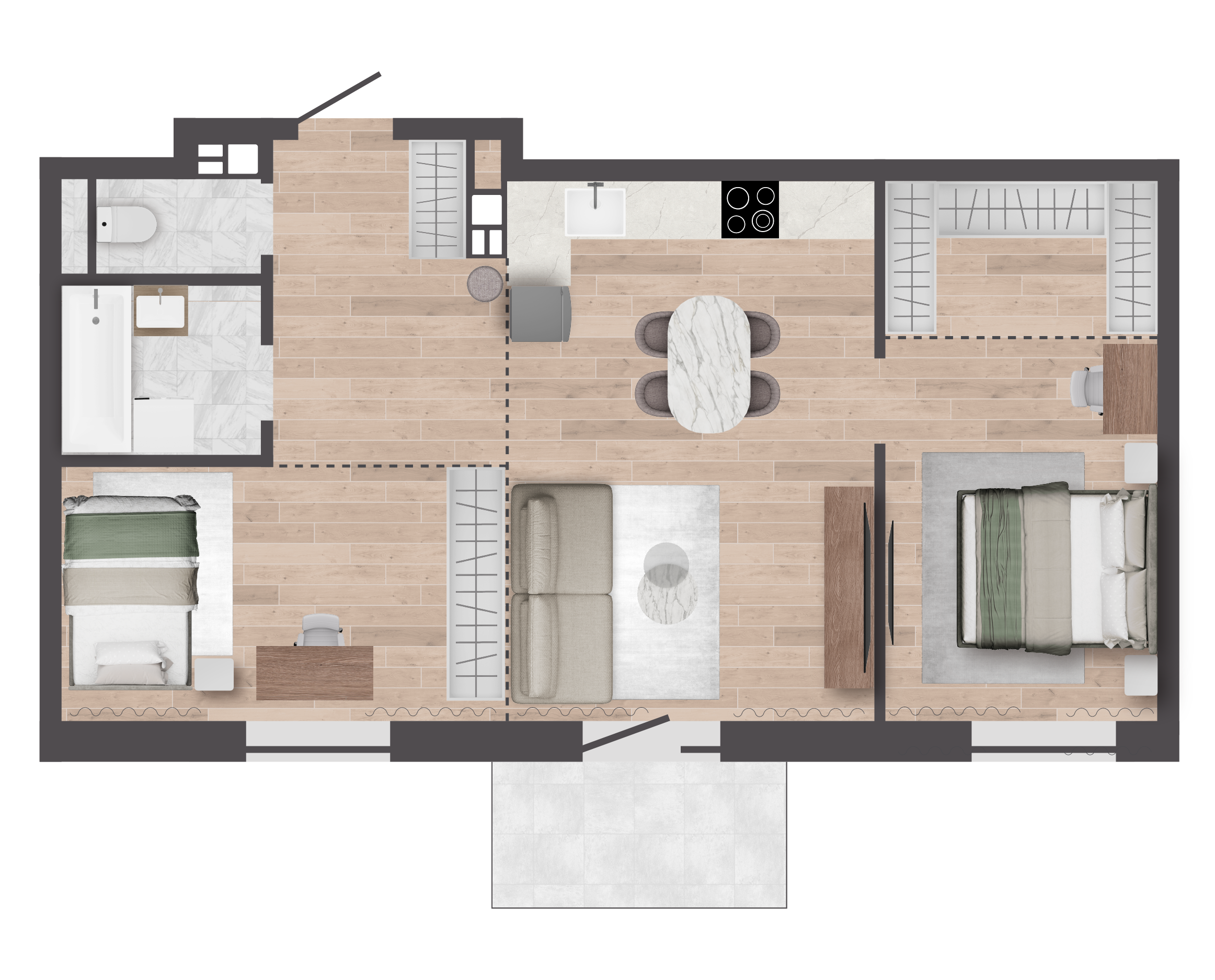 | 62,05 м² Площадь квартиры | 2,72 м Высота потолков | 500 мм Высота подоконной части |