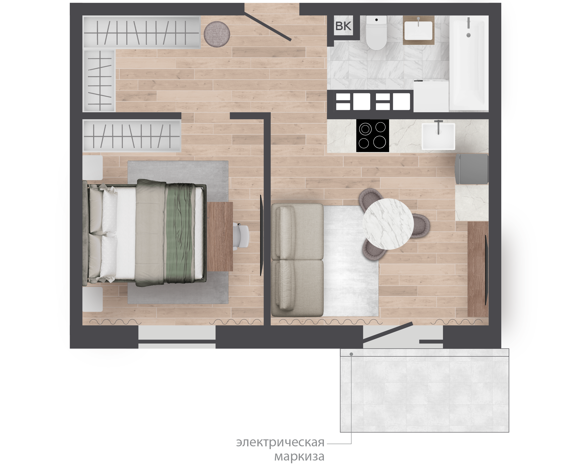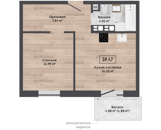 | 39,47 м² Площадь квартиры | 2,72 м Высота потолков | 500 мм Высота подоконной части |