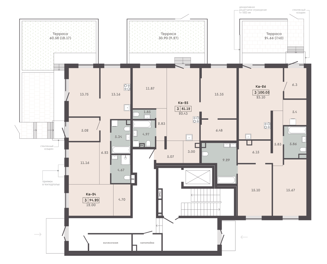3-комнатная3-комнатная 94.2 м2 1 этаж