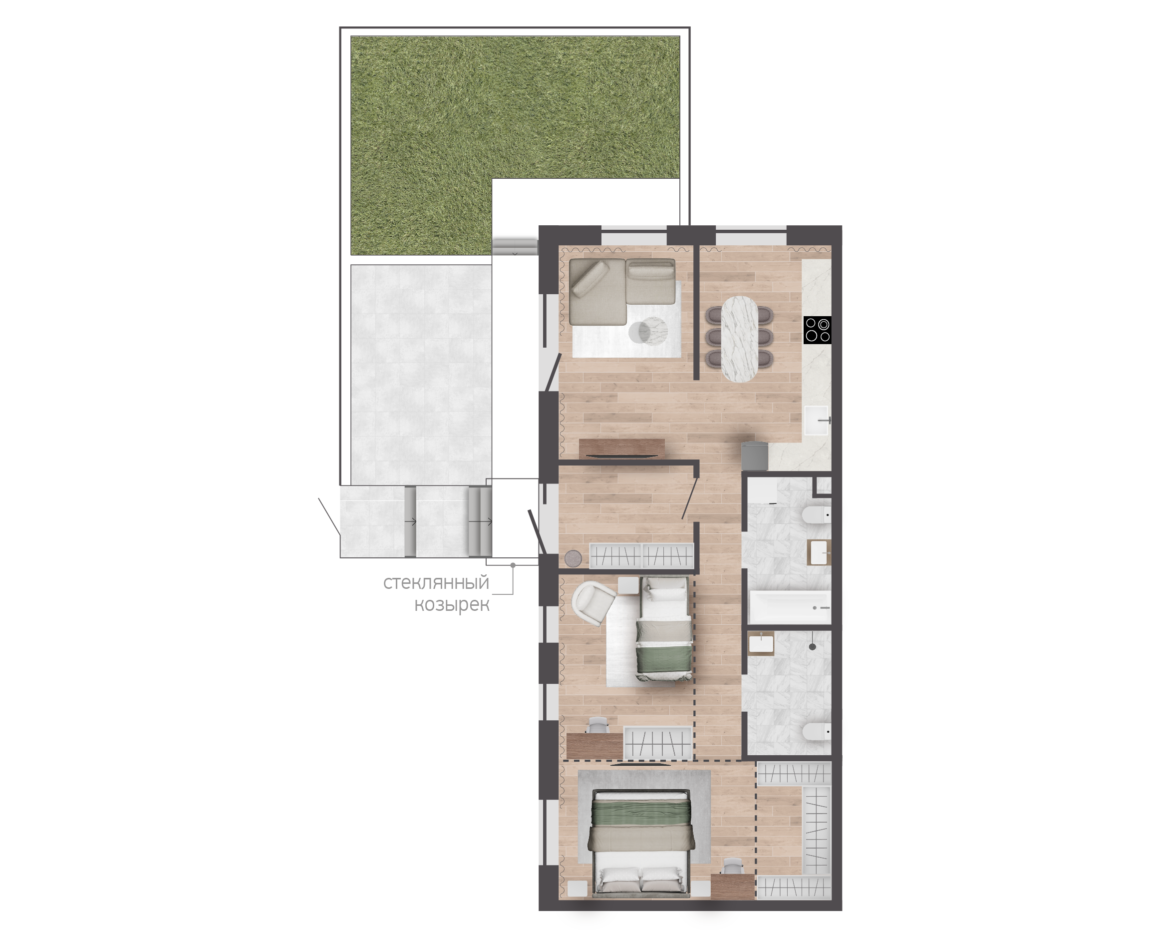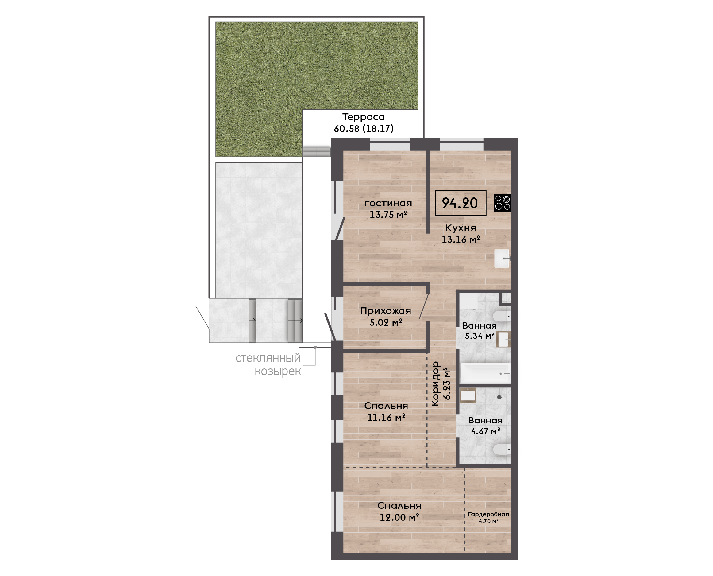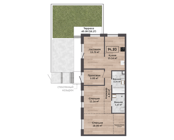 | 94,20 м² Площадь квартиры | 2,72 м Высота потолков | 60,58 м² Площадь участка |