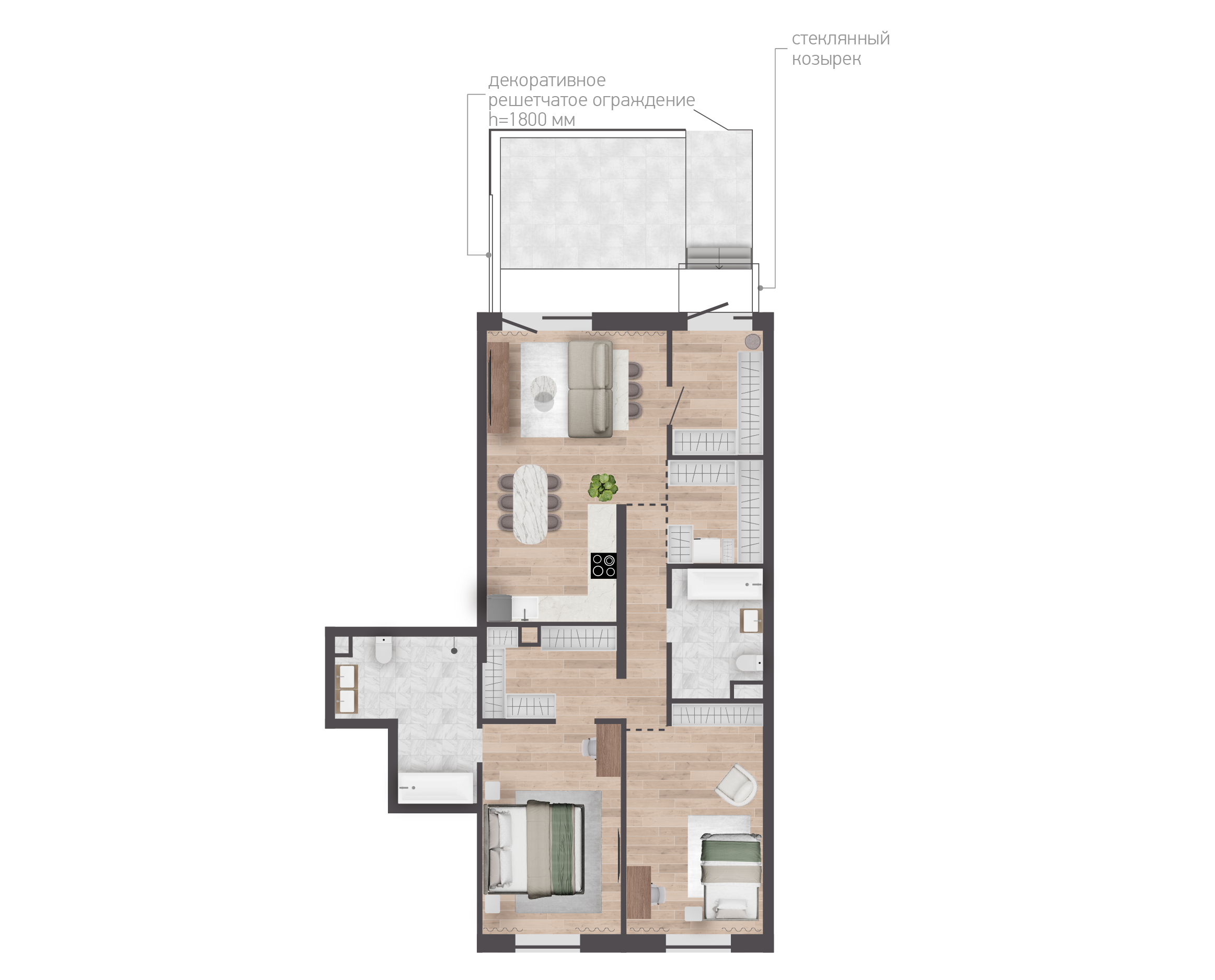 Обязательная покупка при приобретении квартирыУчастки обнесены ограждением, что создает атмосферу уединения и защищенности. Это особенно важно для семей с детьми и домашних животных, позволяя не беспокоиться о посторонних;