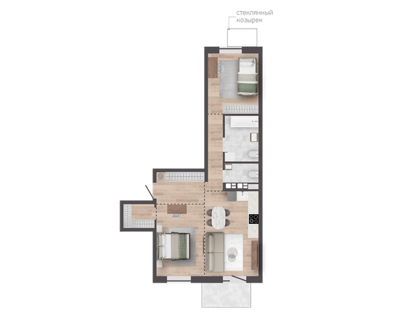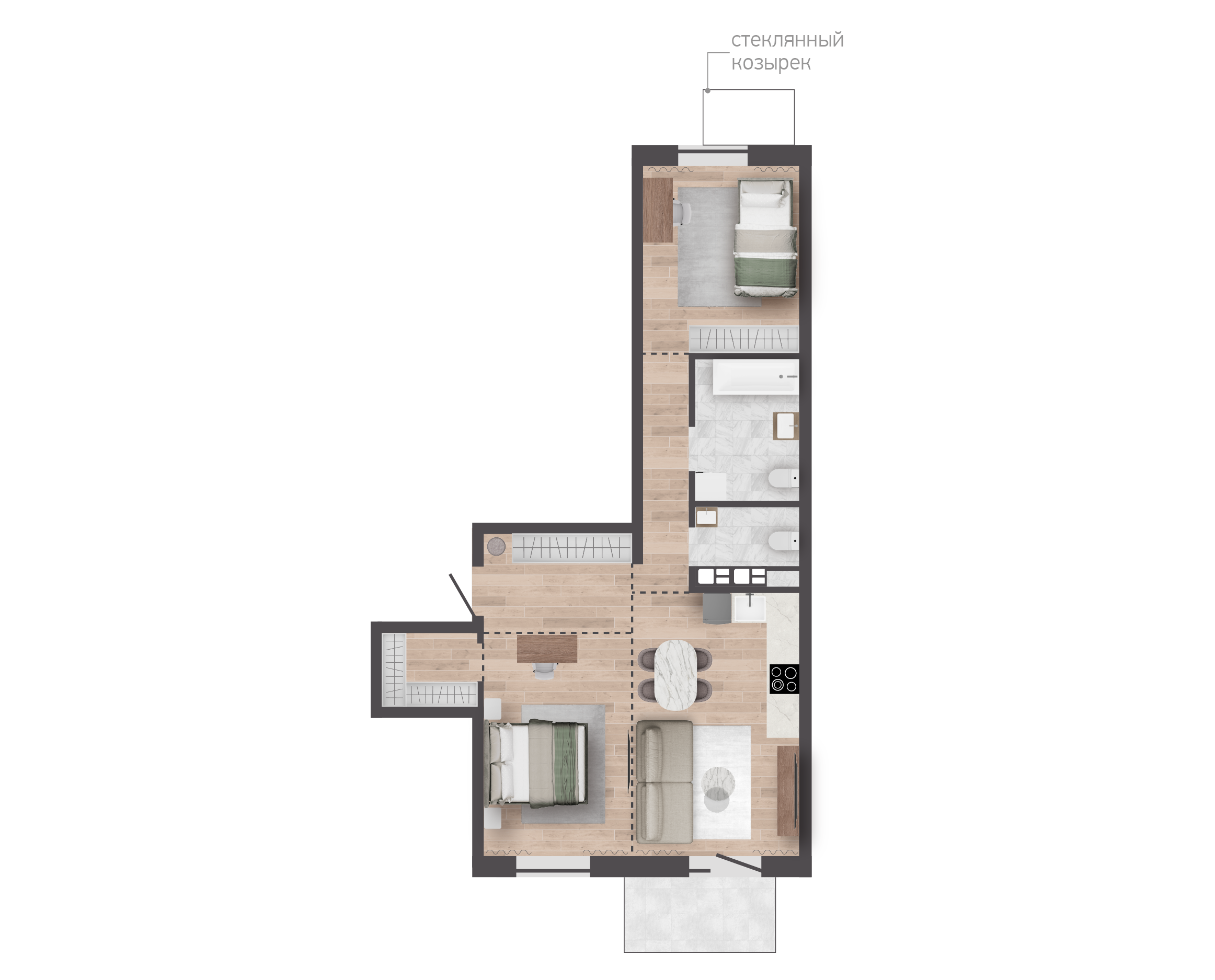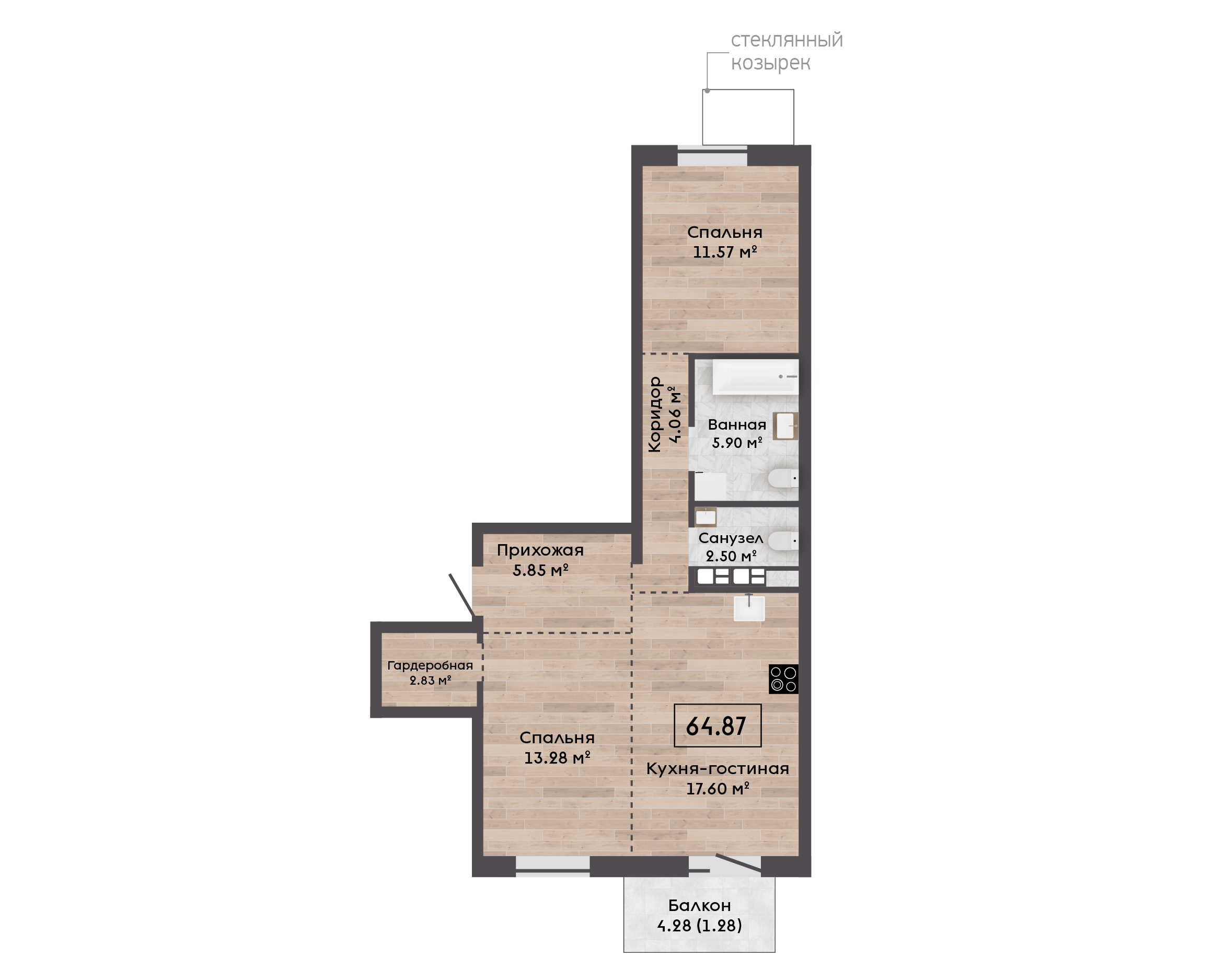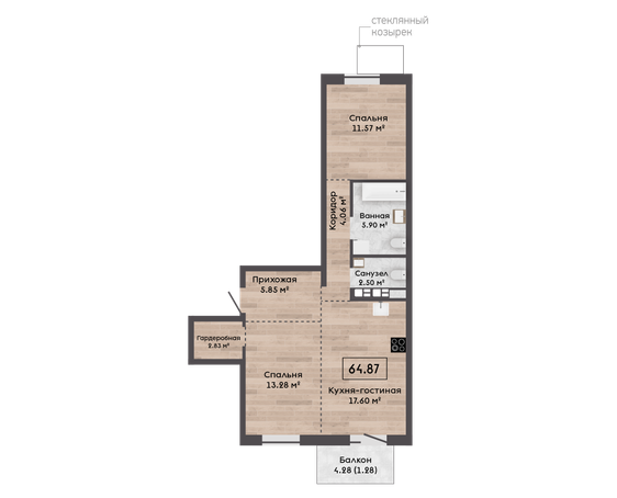 | 64,87 м² Площадь квартиры | 2,72 м Высота потолков | 500 мм Высота подоконной части |