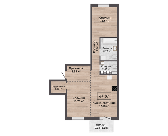 Обязательная покупка при приобретении квартиры| Площадь, м.кв. | 64.87 |