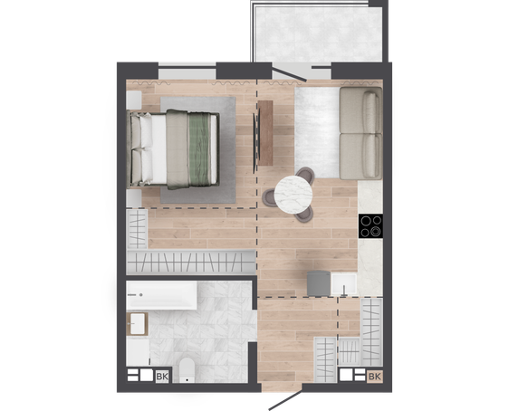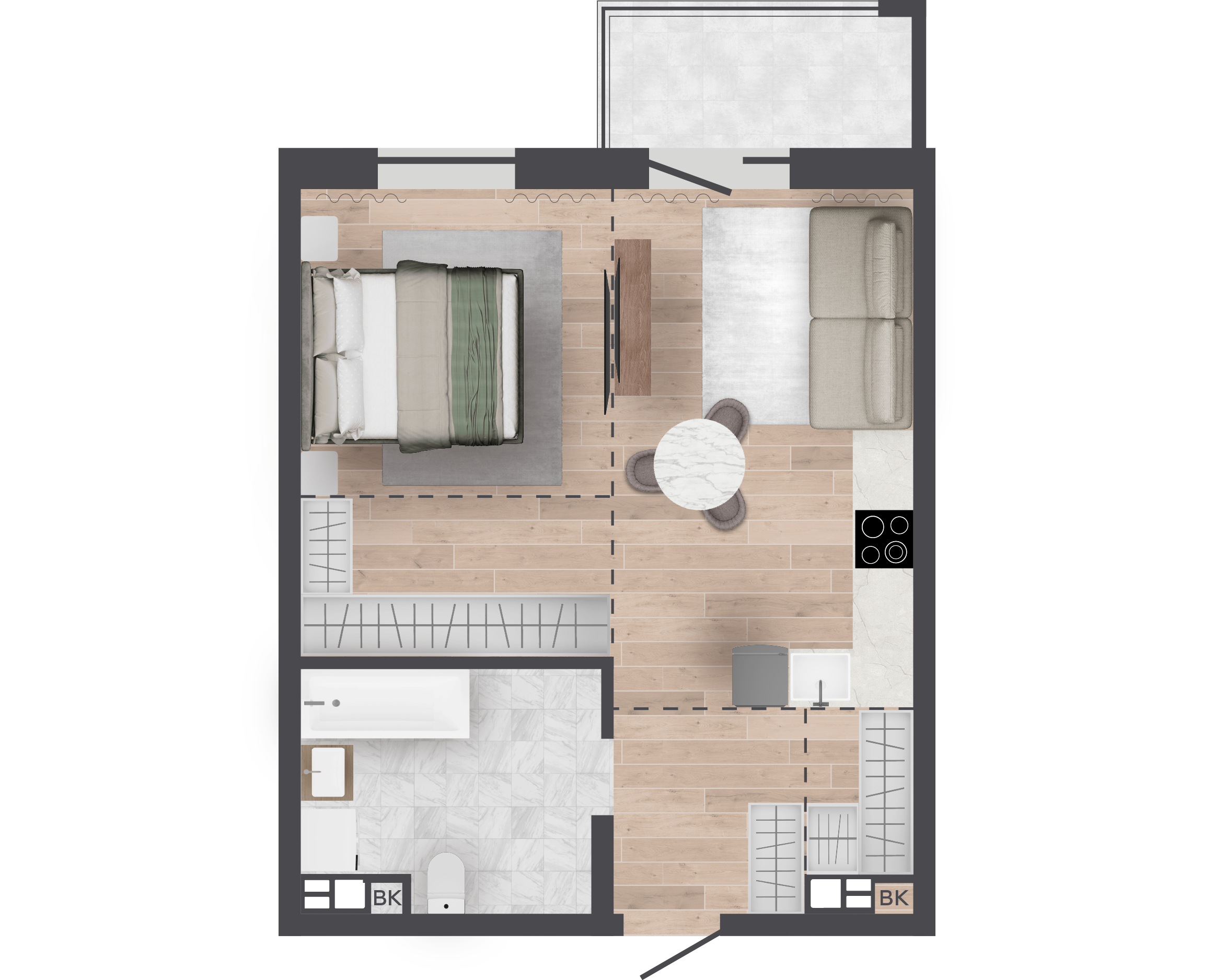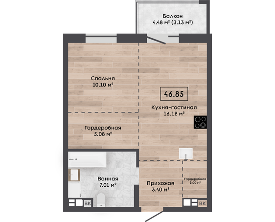 | 46,85 м² Площадь квартиры | 2,72 м Высота потолков | 500 мм Высота подоконной части |