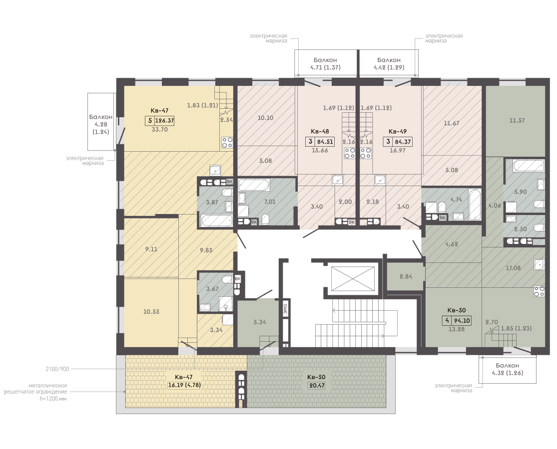 4-комнатная4-комнатная 94.1 м2 6 этаж