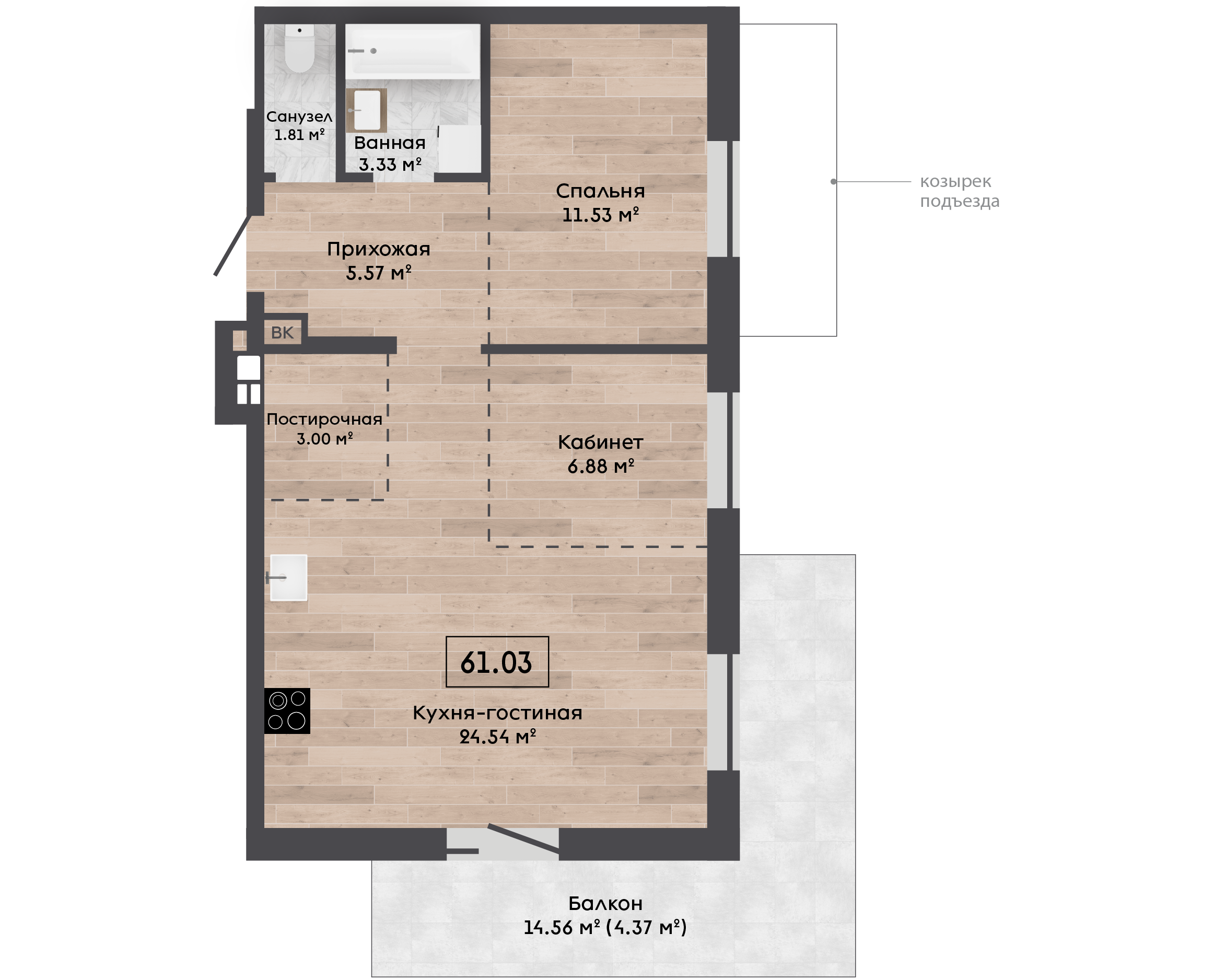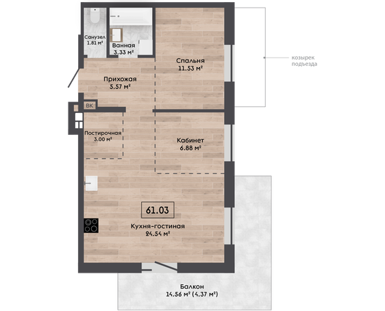 Обязательная покупка при приобретении квартиры| Площадь, м.кв. | 61.03 |