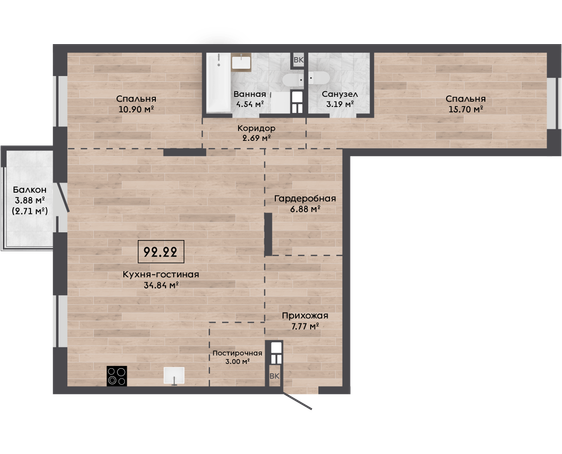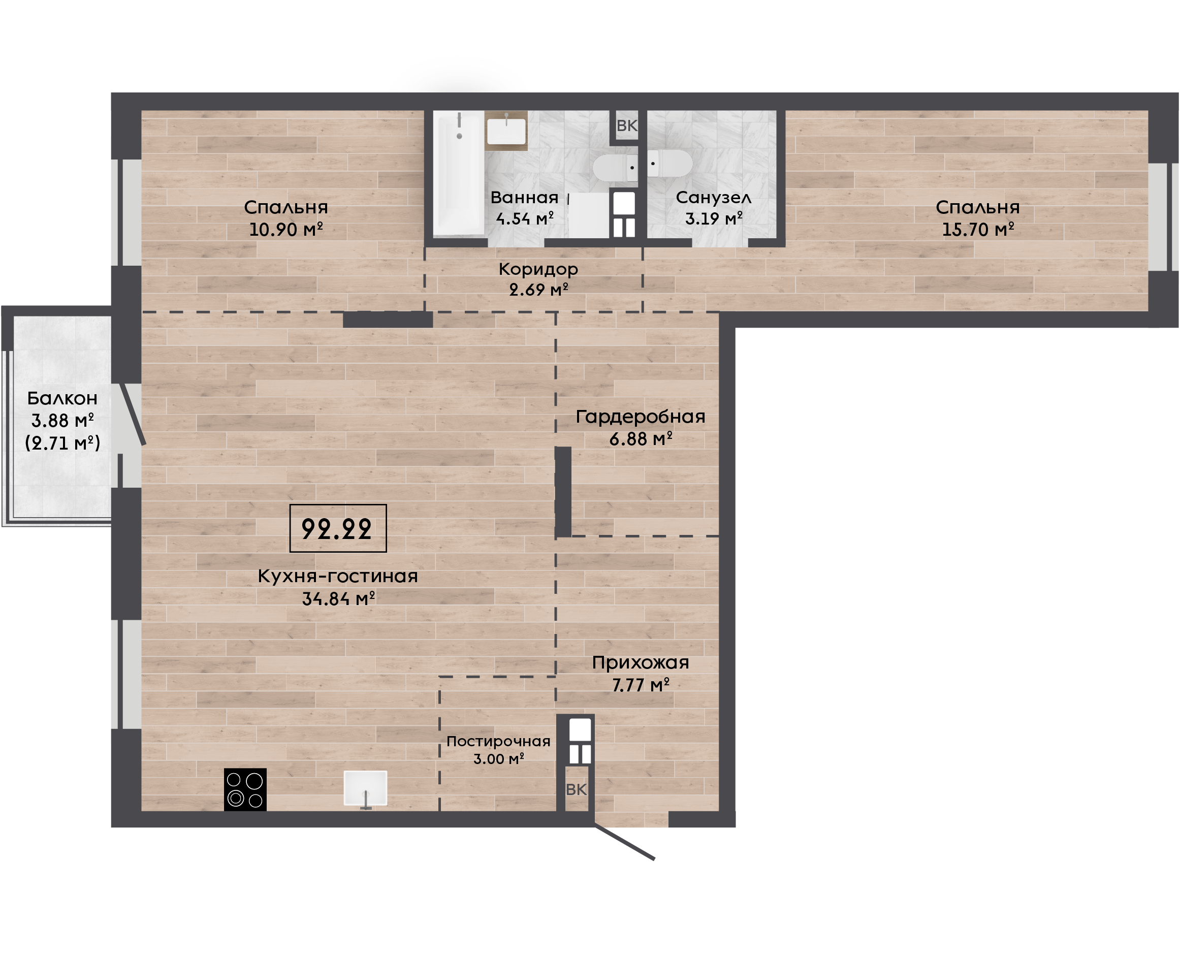 Обязательная покупка при приобретении квартиры| Площадь, м.кв. | 92.22 |