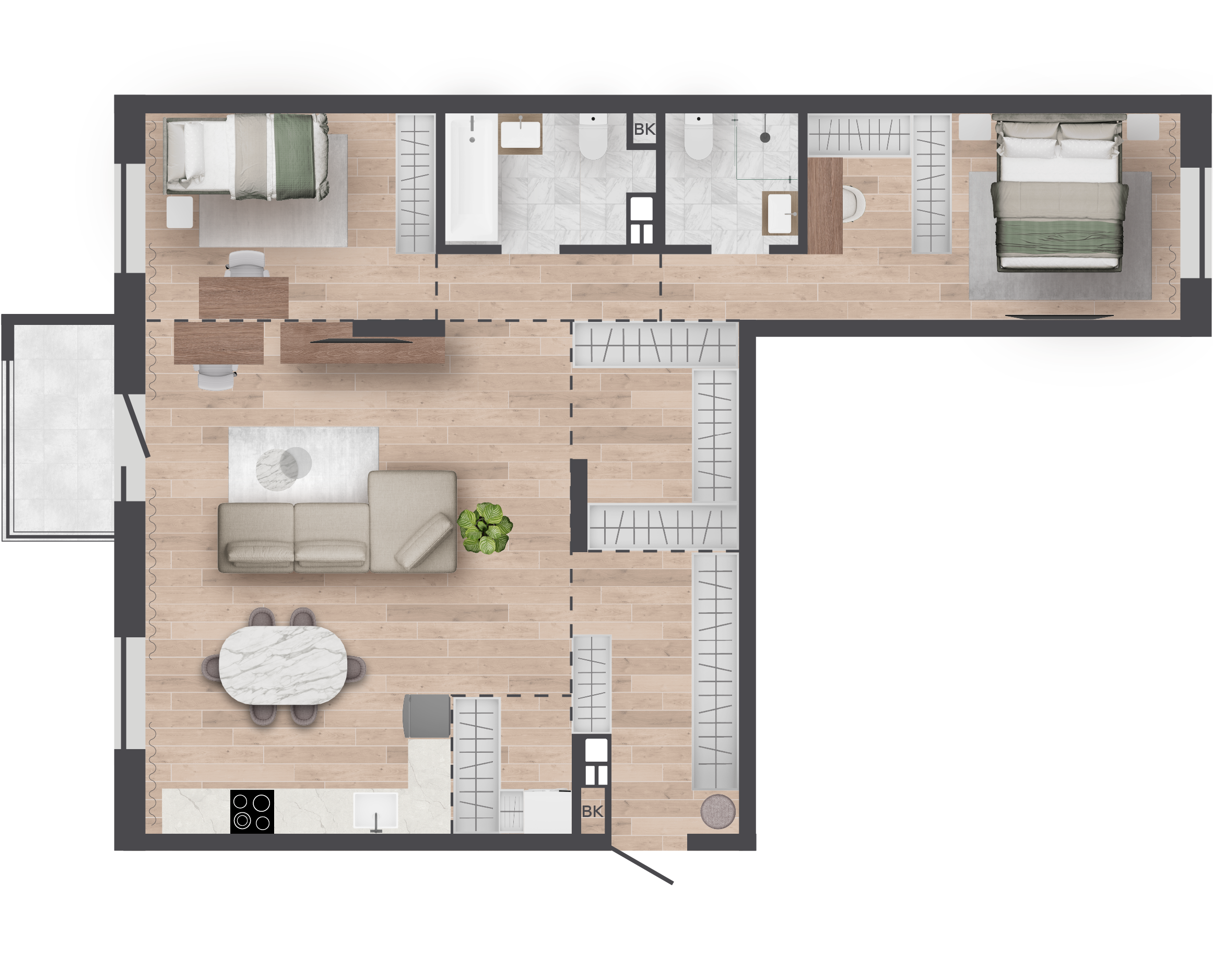 | 92,22 м² Площадь квартиры | 2,72 м Высота потолков | 500 мм Высота подоконной части |