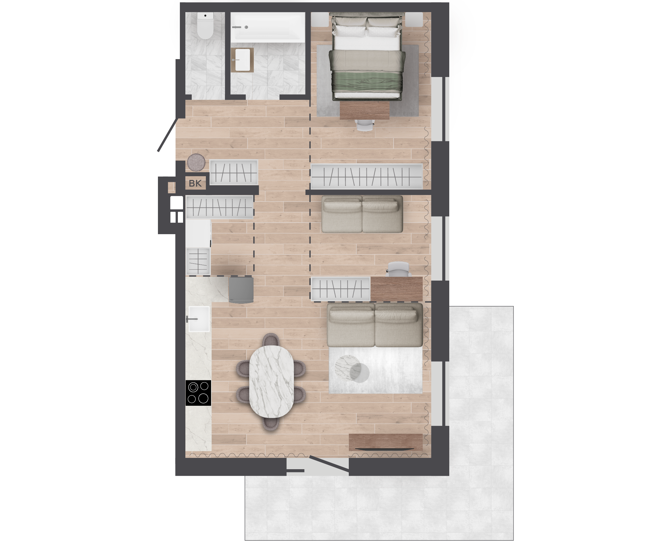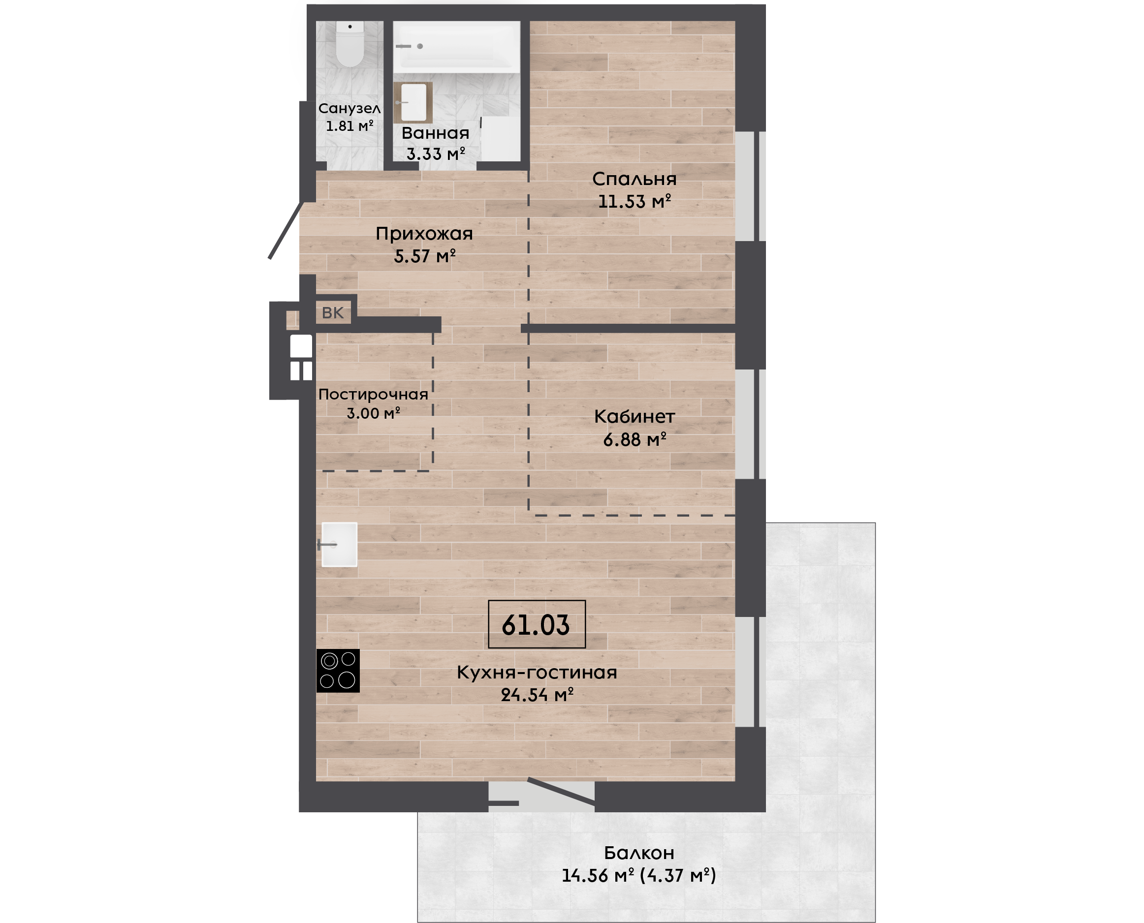 | 61,03 м² Площадь квартиры | 2,72 м Высота потолков | 500 мм Высота подоконной части |
