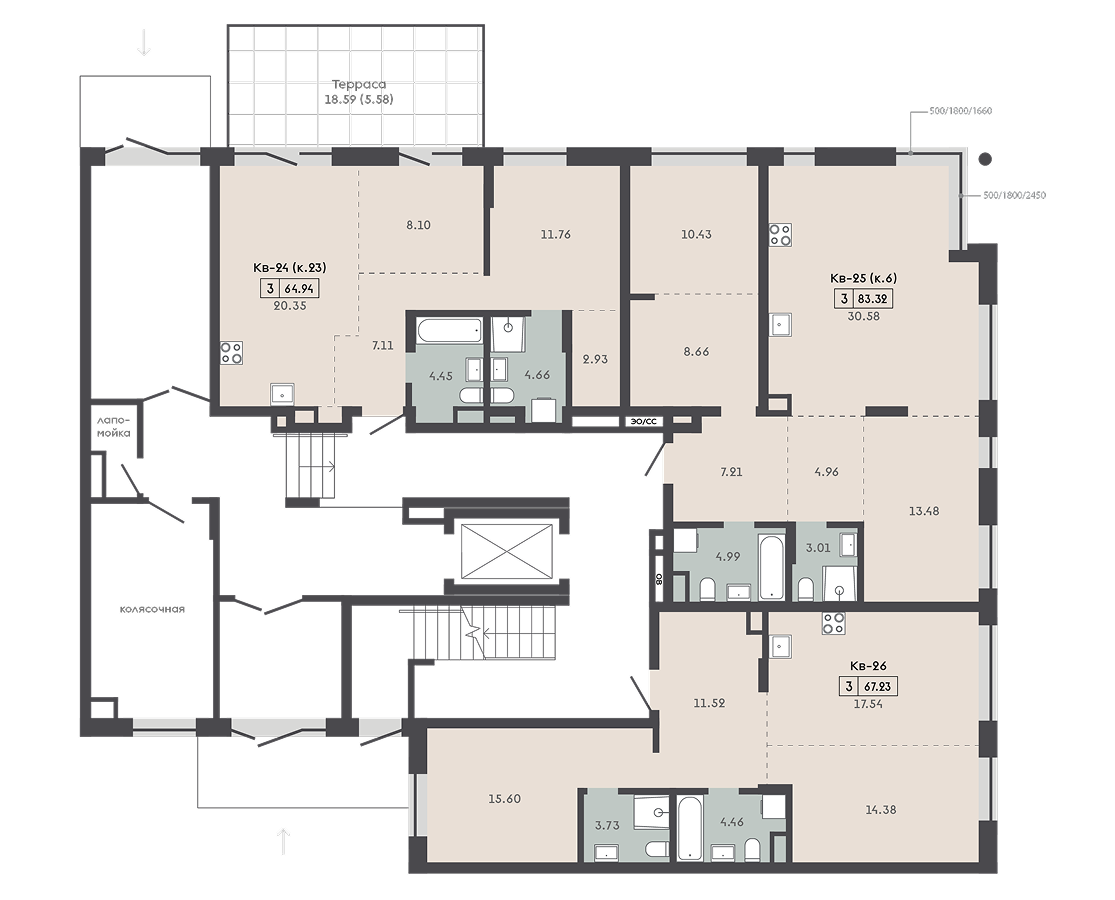3-комнатная3-комнатная 64.94 м2 1 этаж