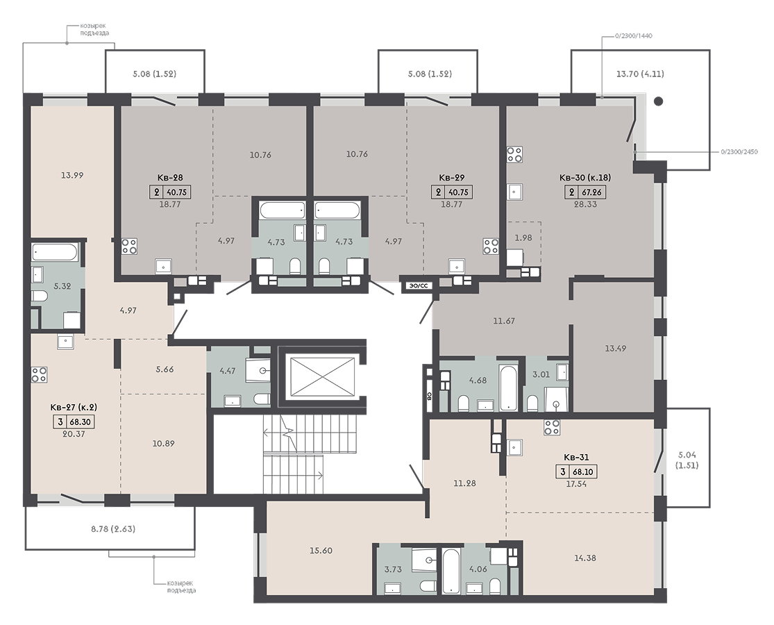 2-комнатная2-комнатная 67.26 м2 2 этаж