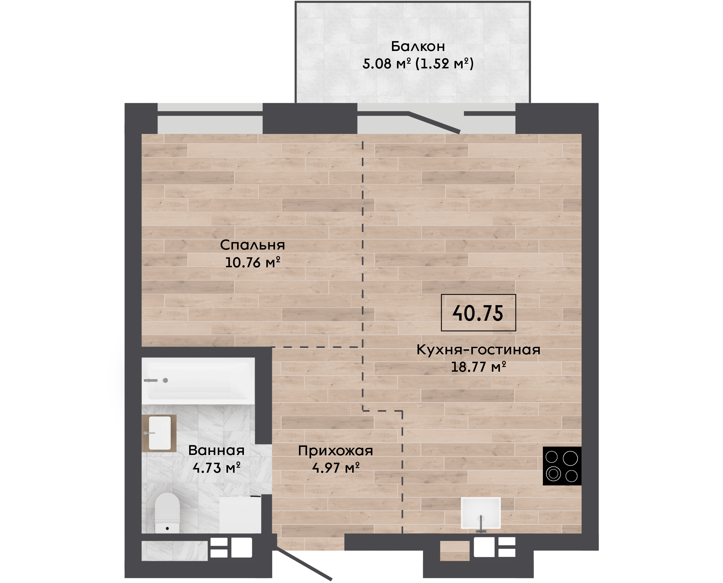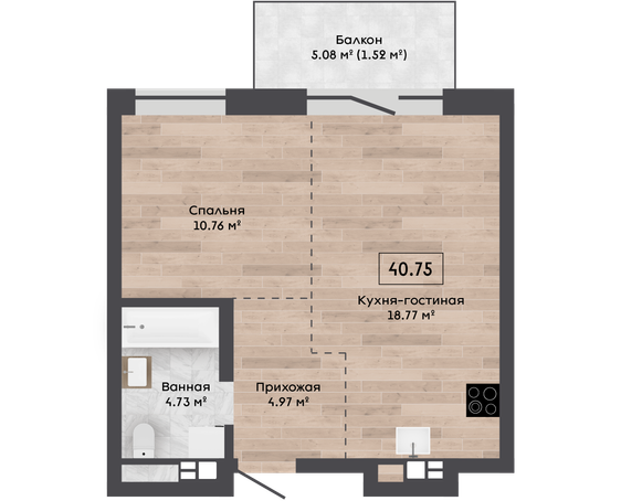 Площадь, м.кв. 40.75