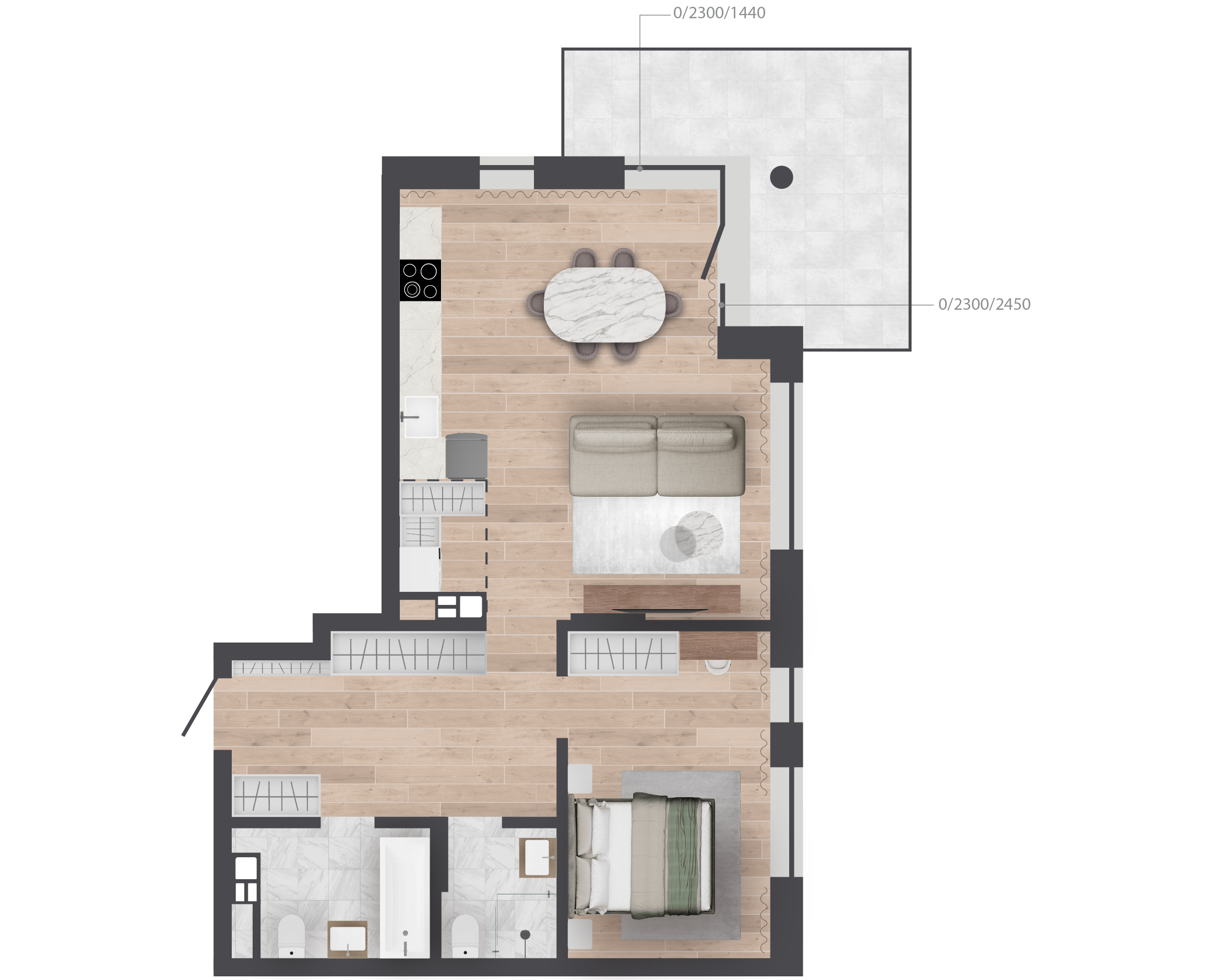 | 67,26 м² Площадь квартиры | 2,72 м Высота потолков | 500 мм Высота подоконной части |