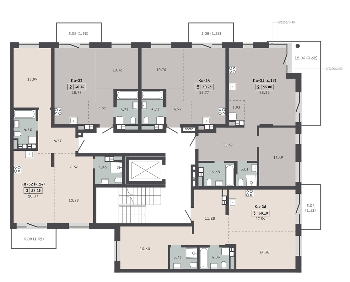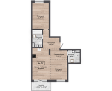 2-комнатная2-комнатная 66.8 м2 3 этаж