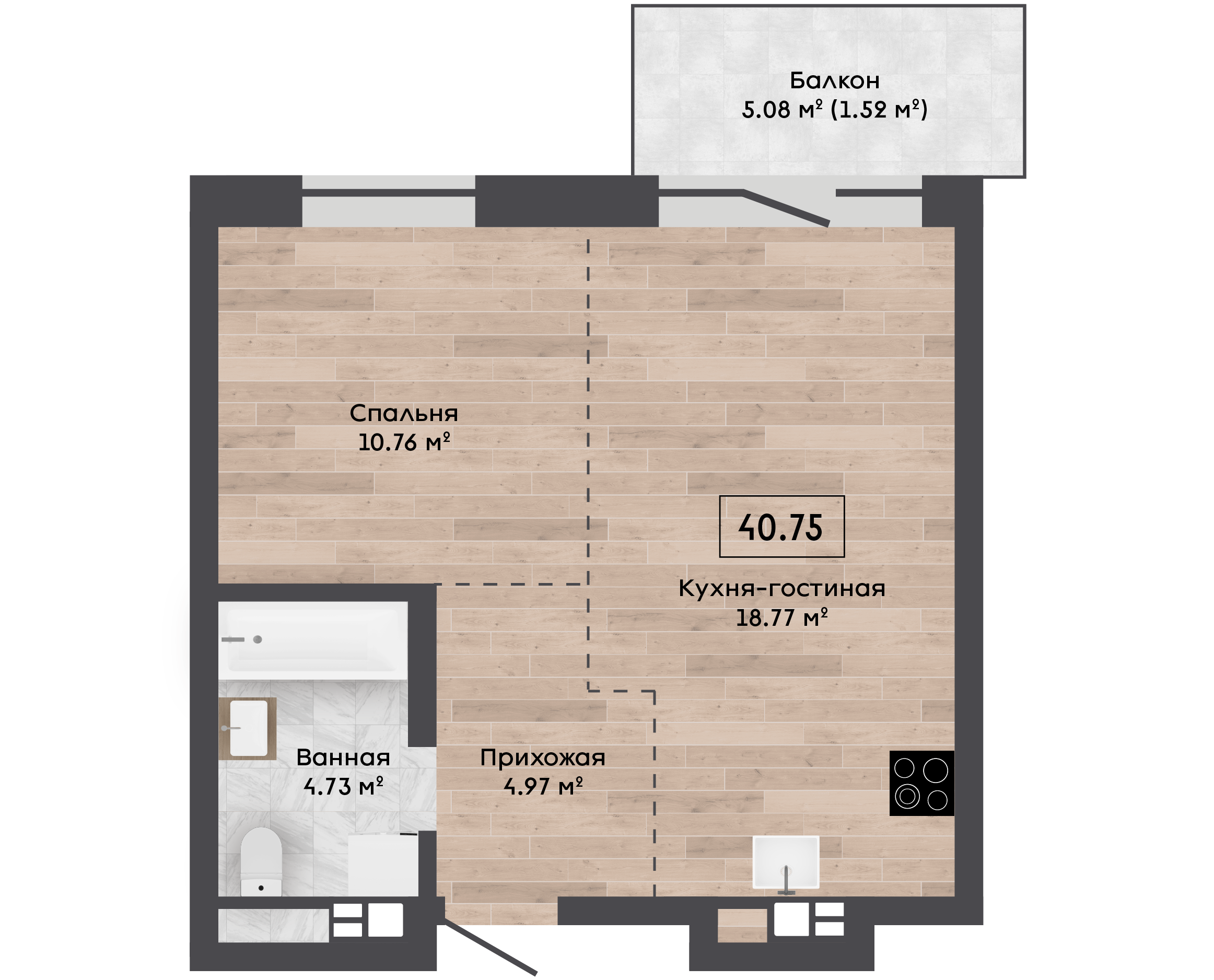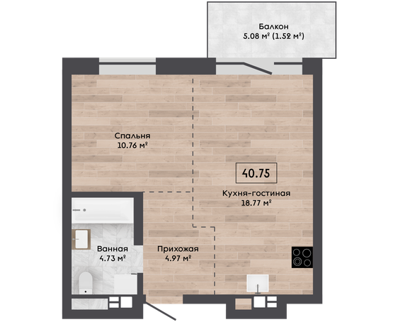 Площадь, м.кв. 40.75