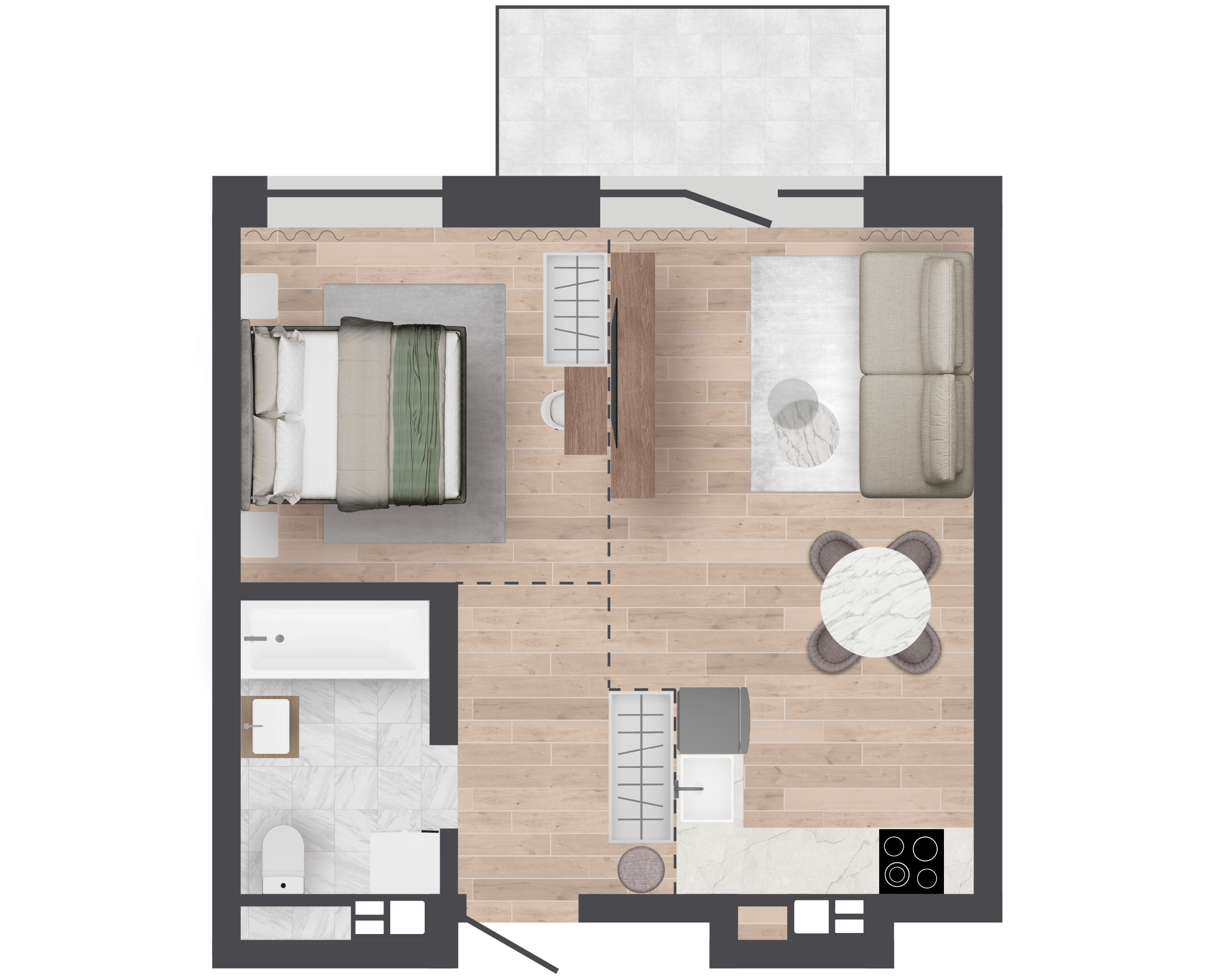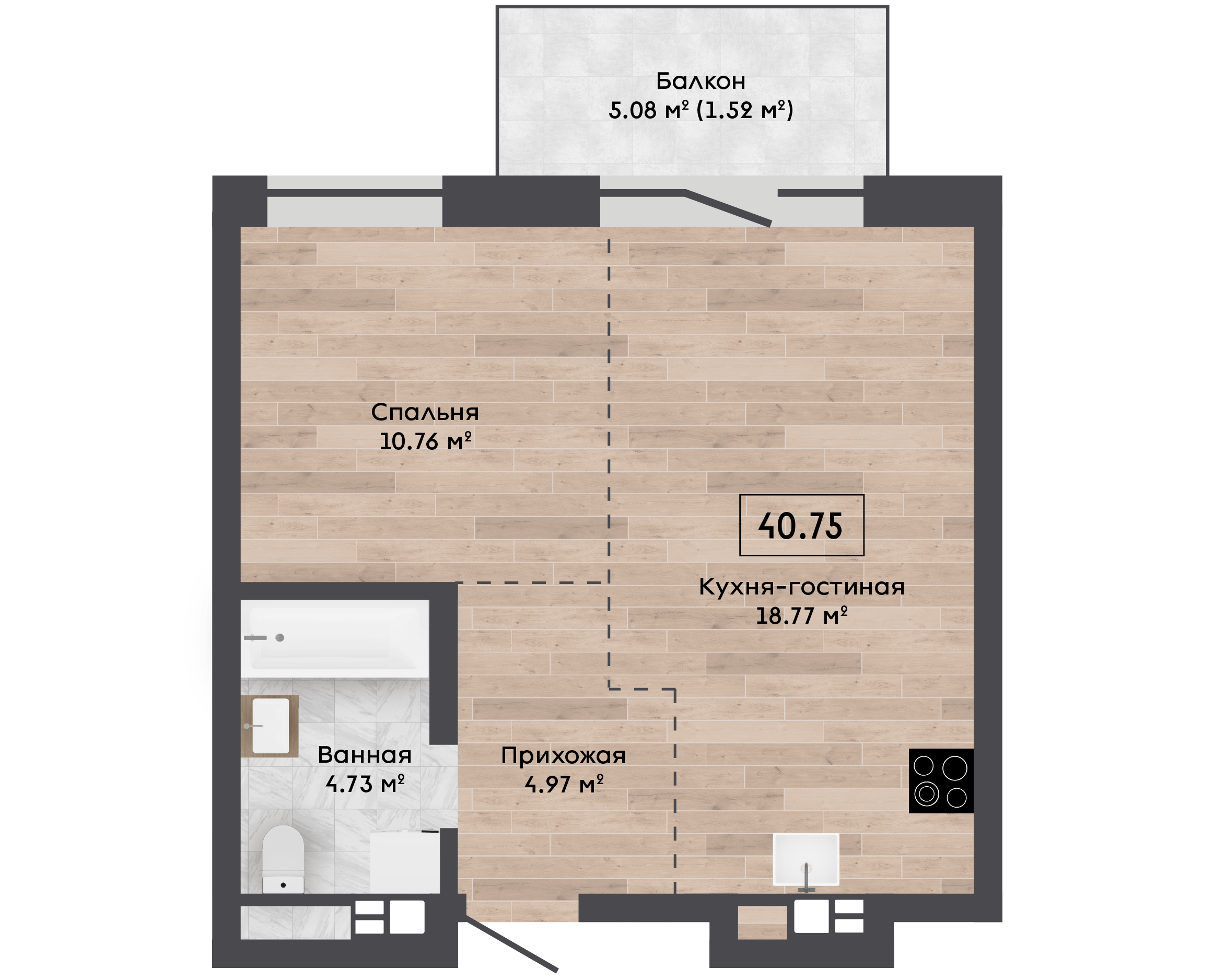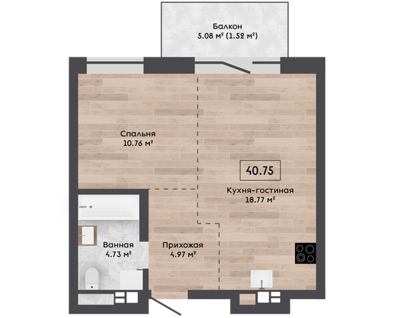 40,75 м² Площадь квартиры 2,72 м Высота потолков 500 мм Высота подоконной части