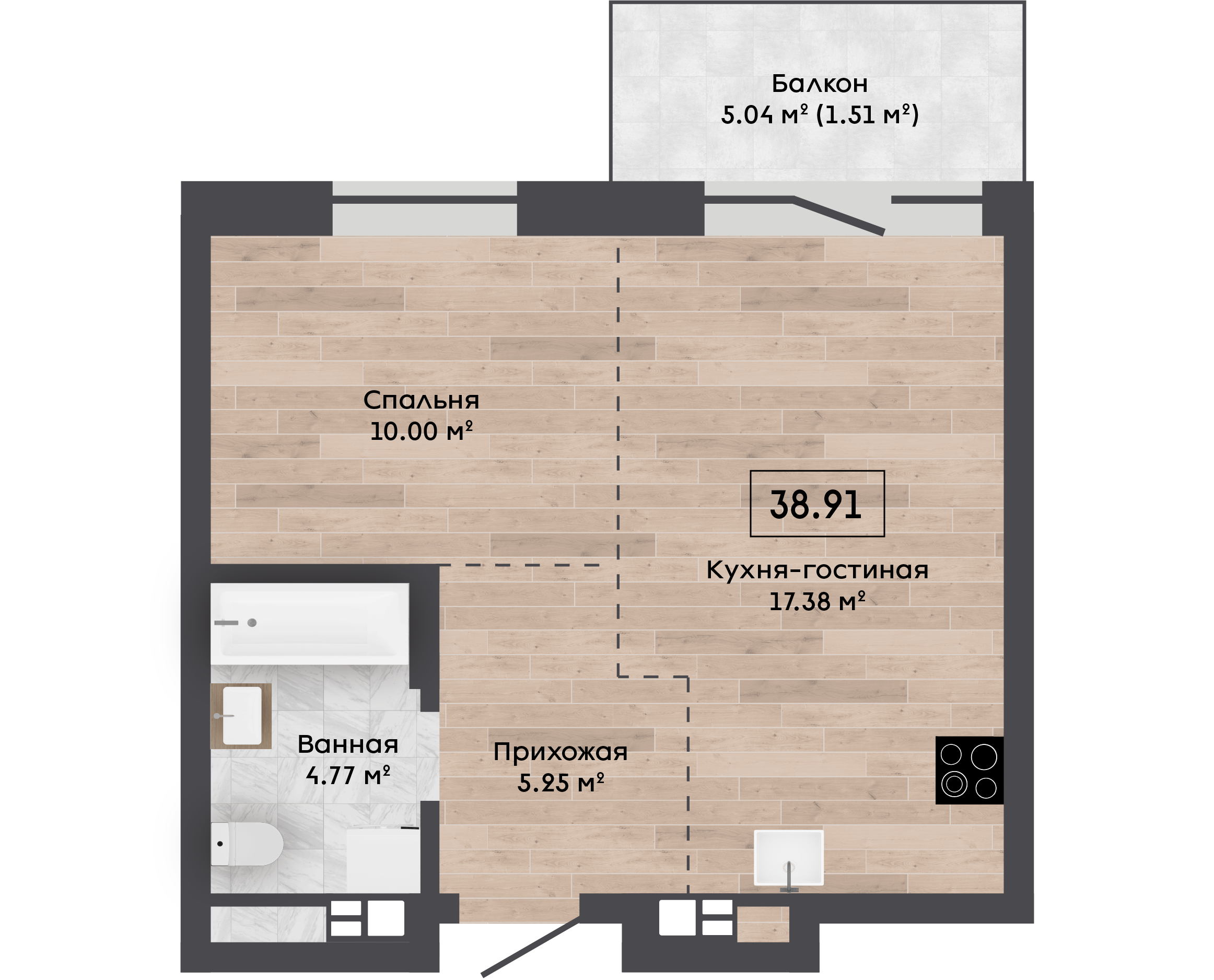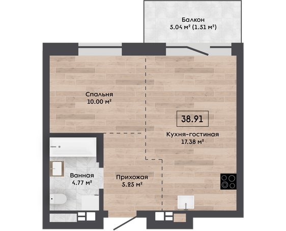 | Площадь, м.кв. | 38.91 |