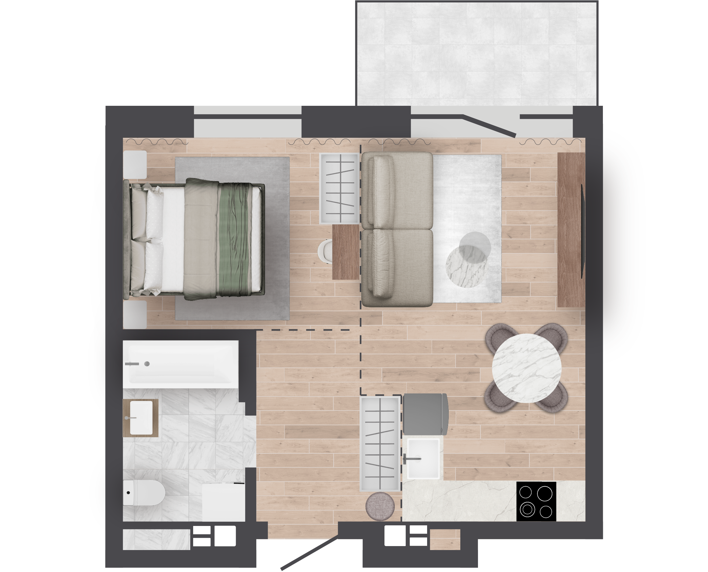 | 38,91 м² Площадь квартиры | 2,7 м Высота потолков | 500 мм Высота подоконной части |