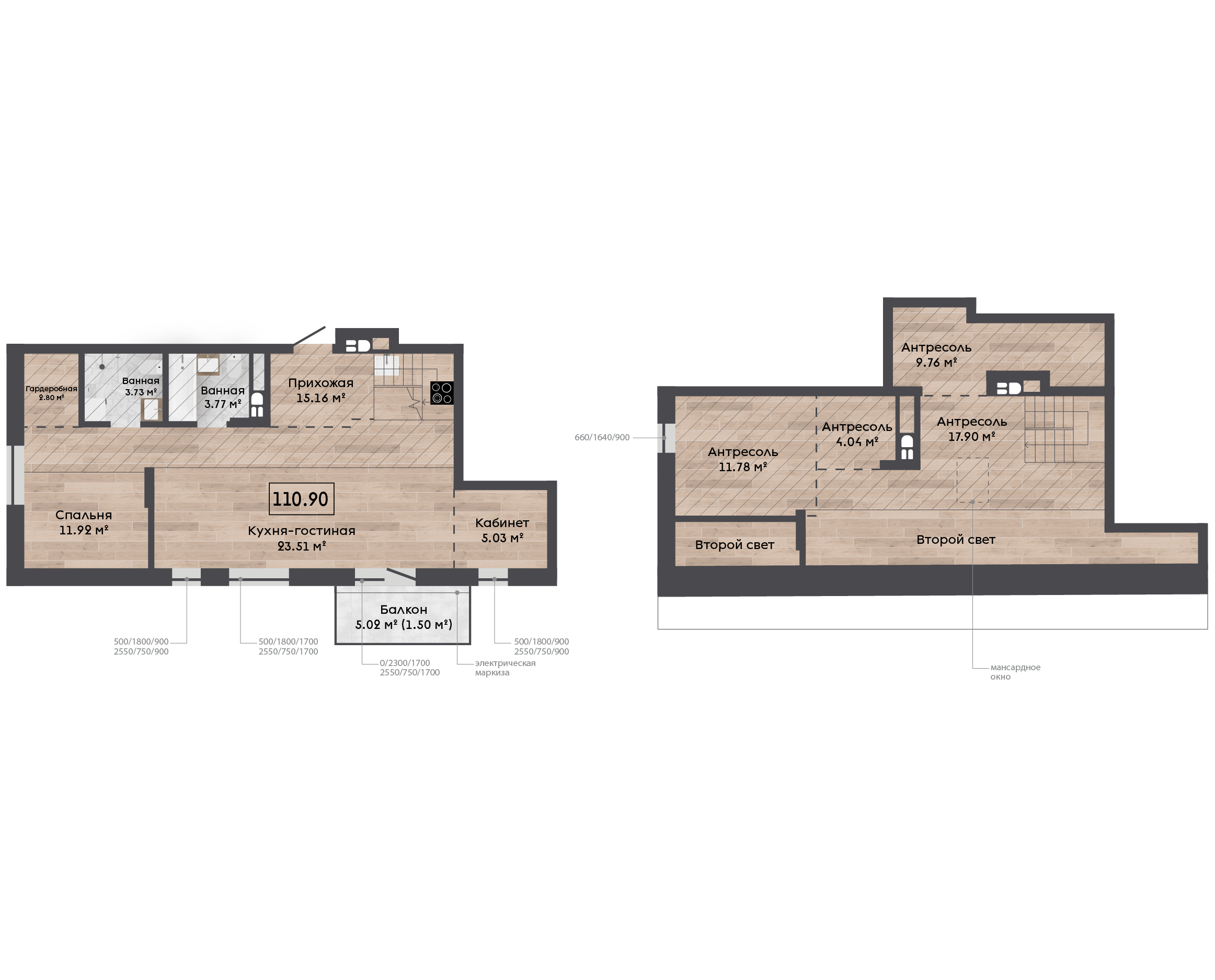 | 110,90 м² Площадь квартиры | до 6,5 м Высота потолков | 500 мм Высота подоконной части |