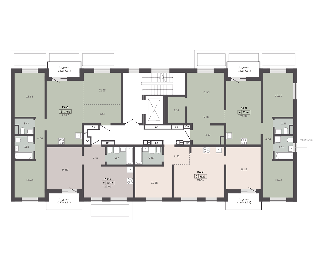 2-комнатная2-комнатная 40.17 м2 2 этаж