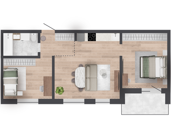 58,47 м² Площадь квартиры | 2,9 м Высота потолков | 500 мм Высота подоконной части |