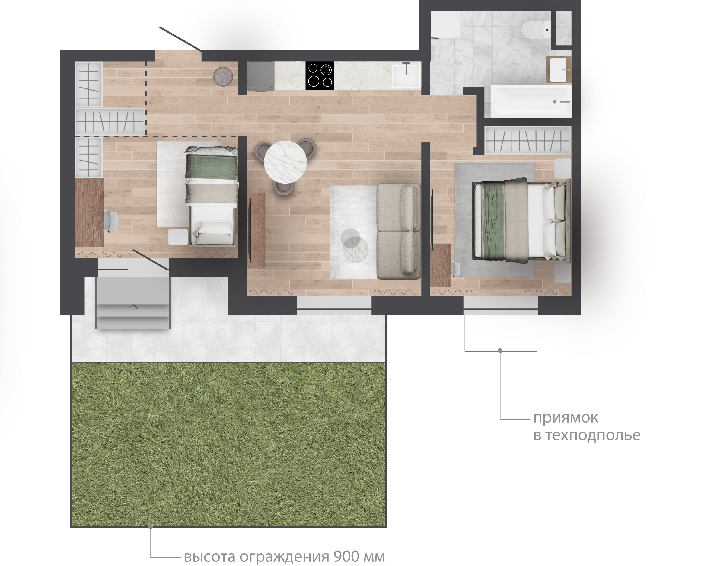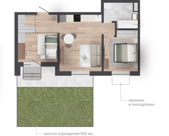 Квартиры на 1 этаже с личными участками-террасами с видом во двор