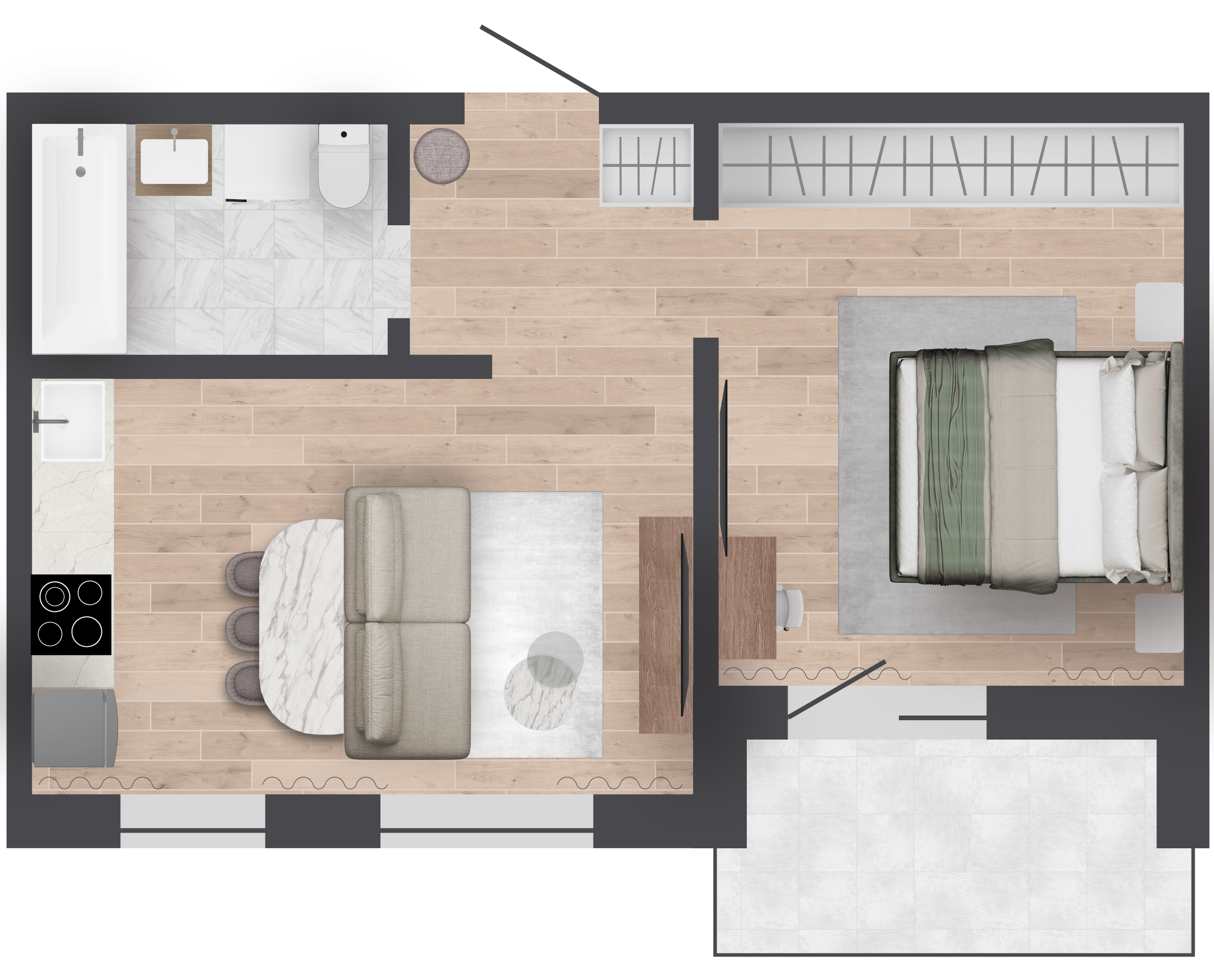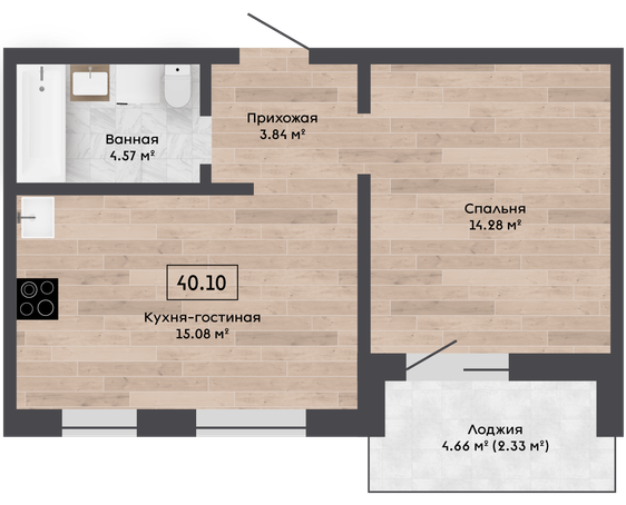 40,10 м² Площадь квартиры | 2,9 м Высота потолков | 500 мм Высота подоконной части |