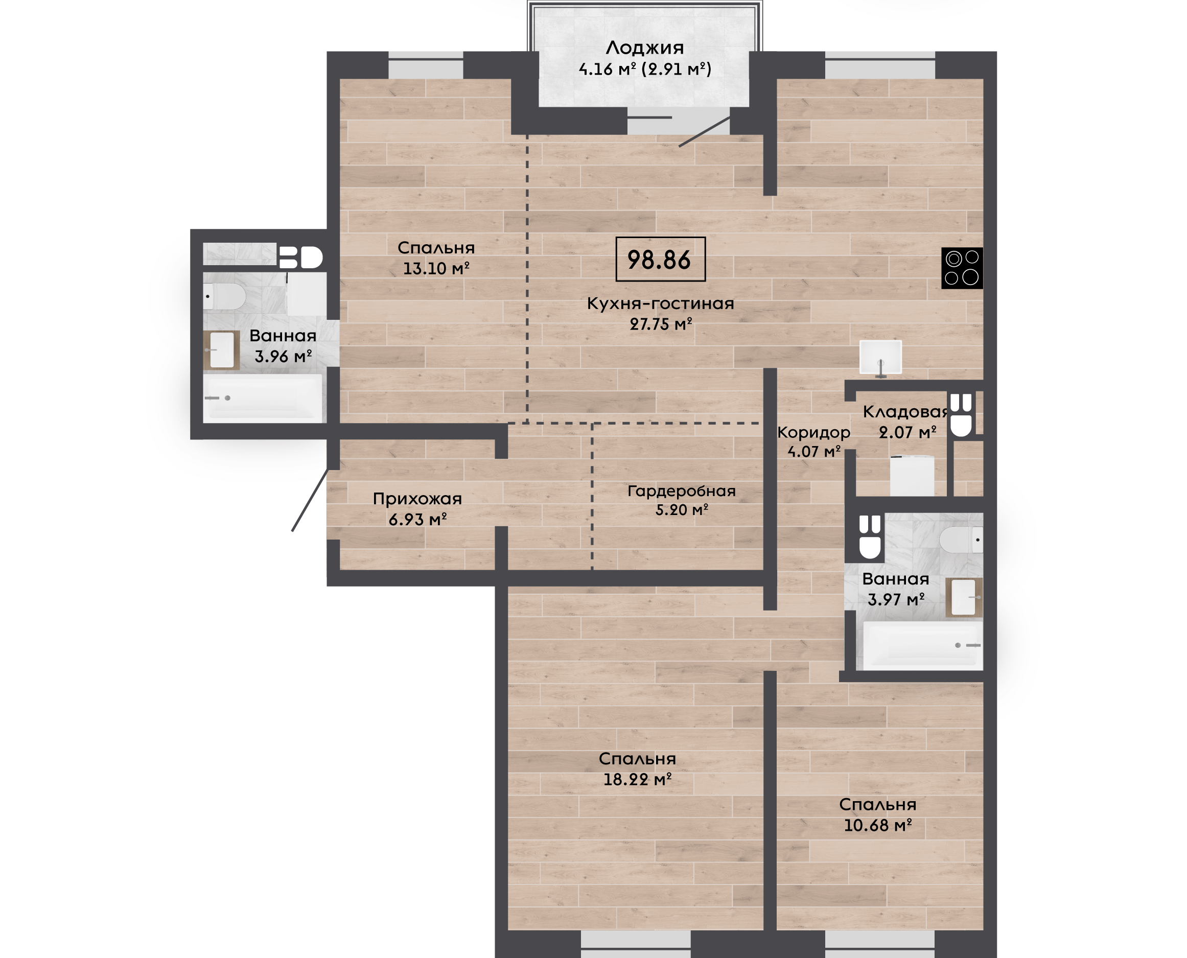Обязательная покупка при приобретении квартирыПлощадь, м.кв. | 98.86 |