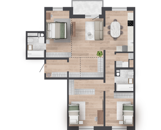 98,86 м² Площадь квартиры | 2,9 м Высота потолков | 500 мм Высота подоконной части |