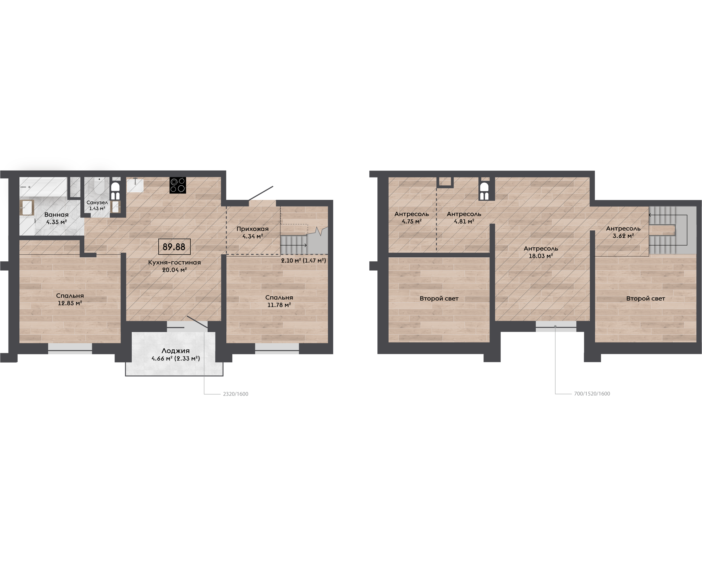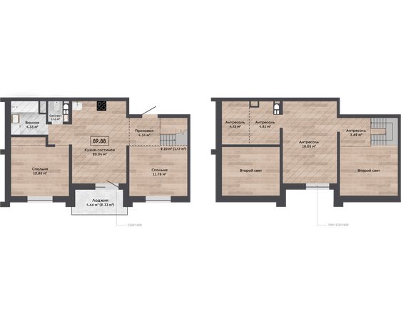89,88 м² Площадь квартиры | до 8,3 м Высота потолков | 500 мм Высота подоконной части |