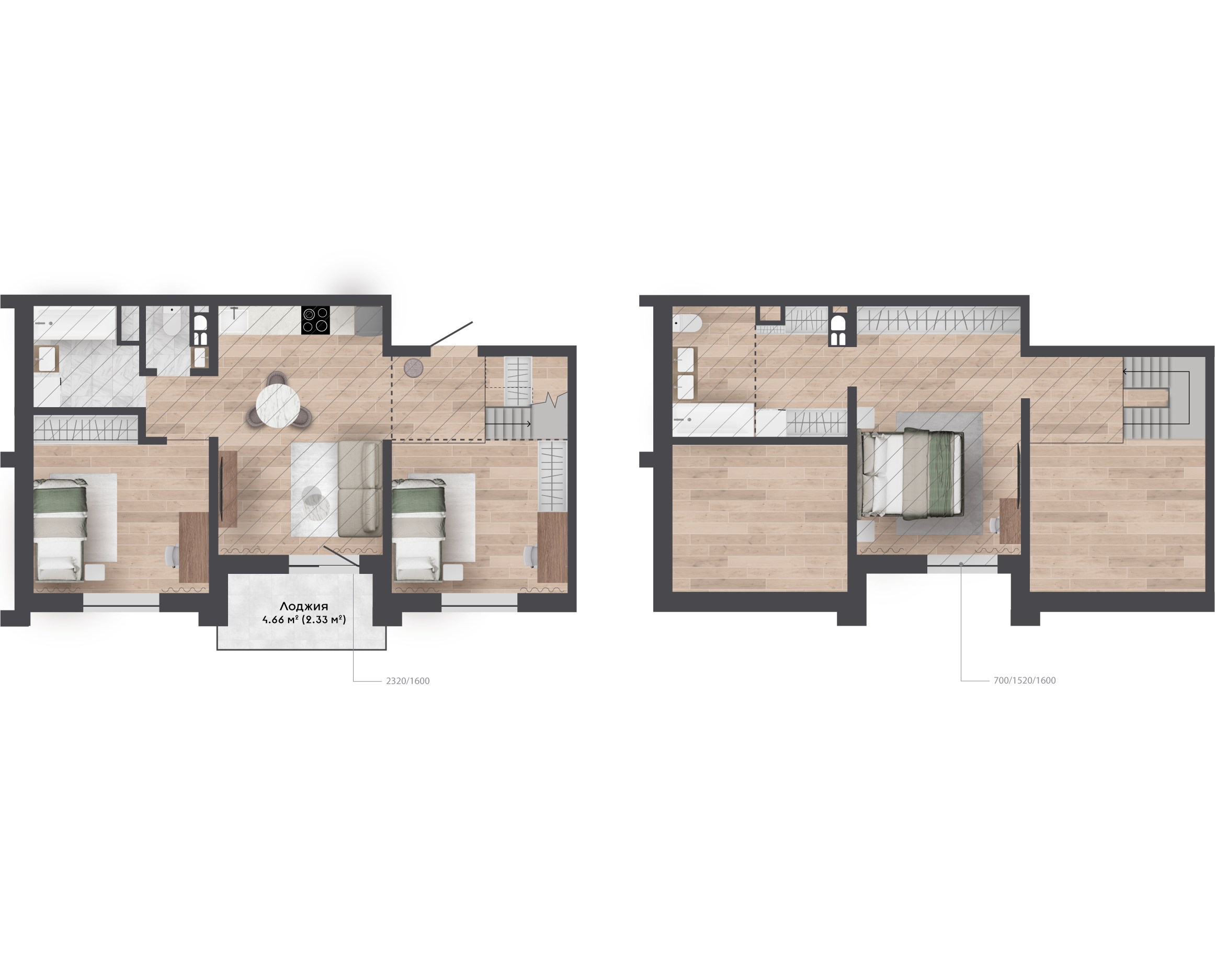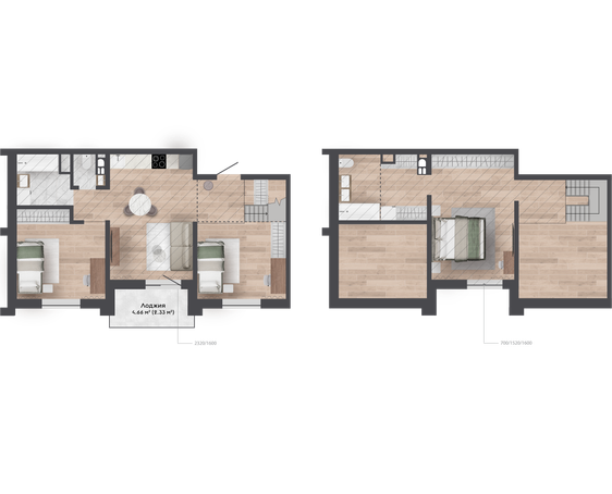 Мансардные двухуровневые квартиры с высокими скатными потолками до 8,3 м, мансардные окна в кровле
