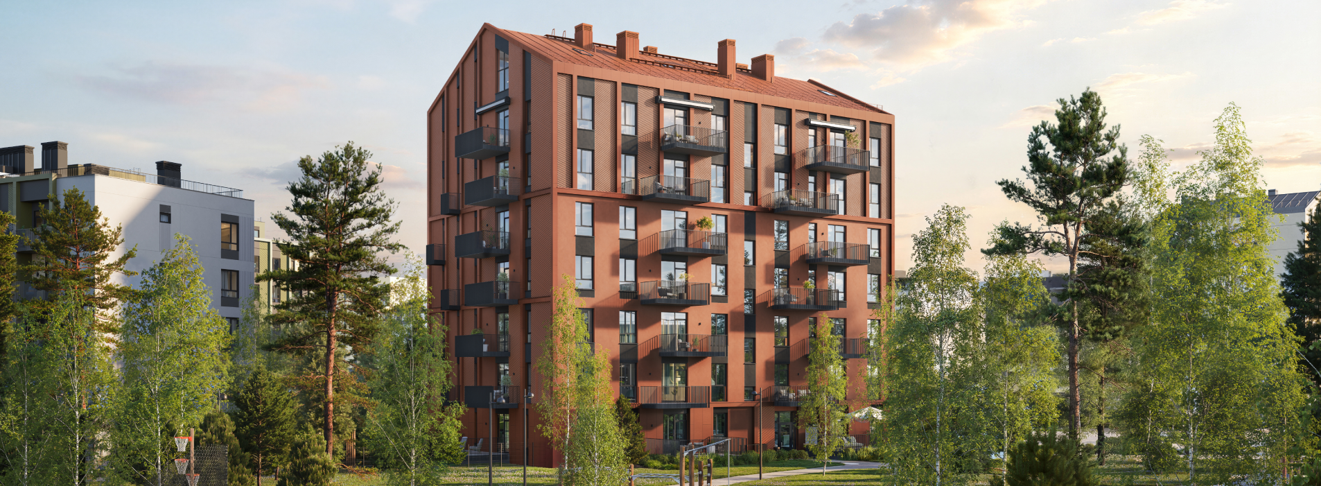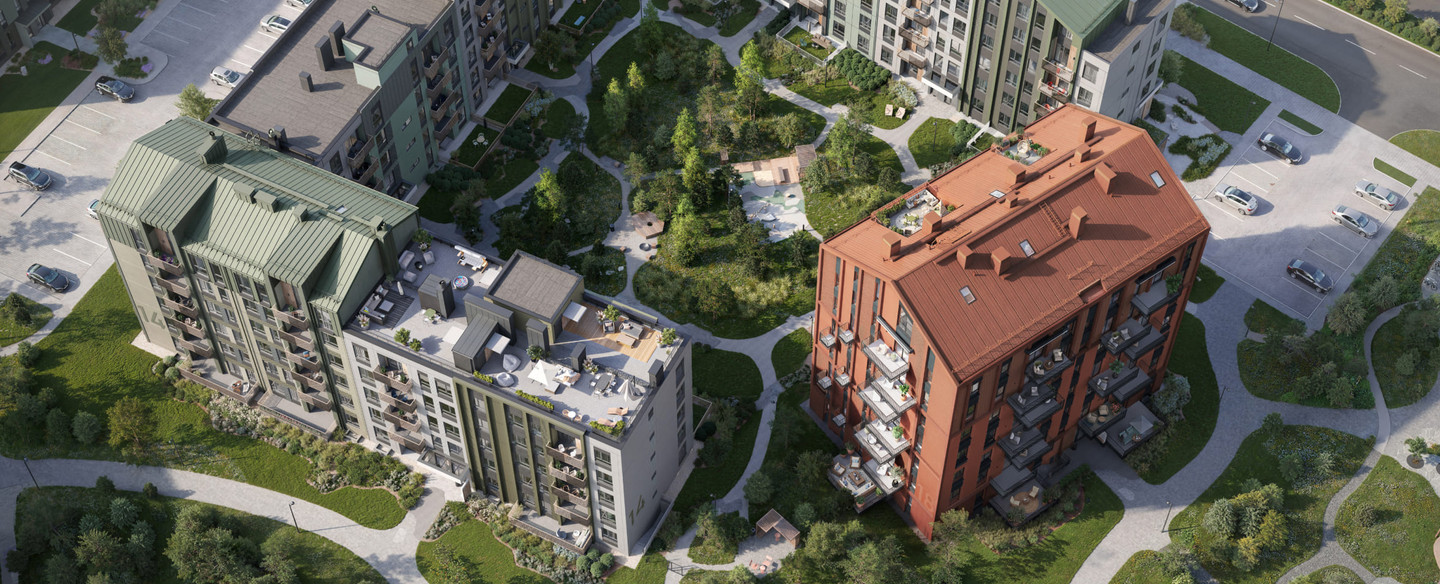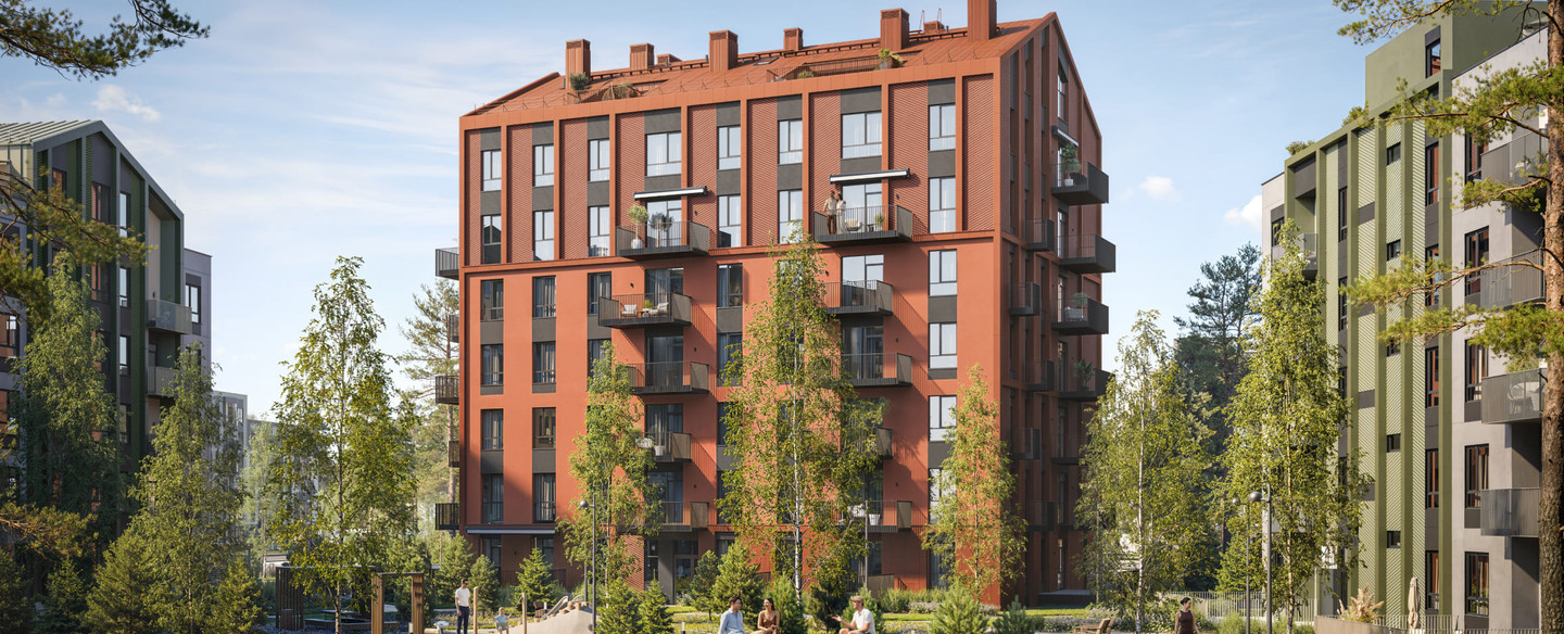 Квартиры на 1 этаже с личными участками-террасами площадью от 19 до 23 м²