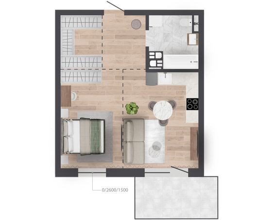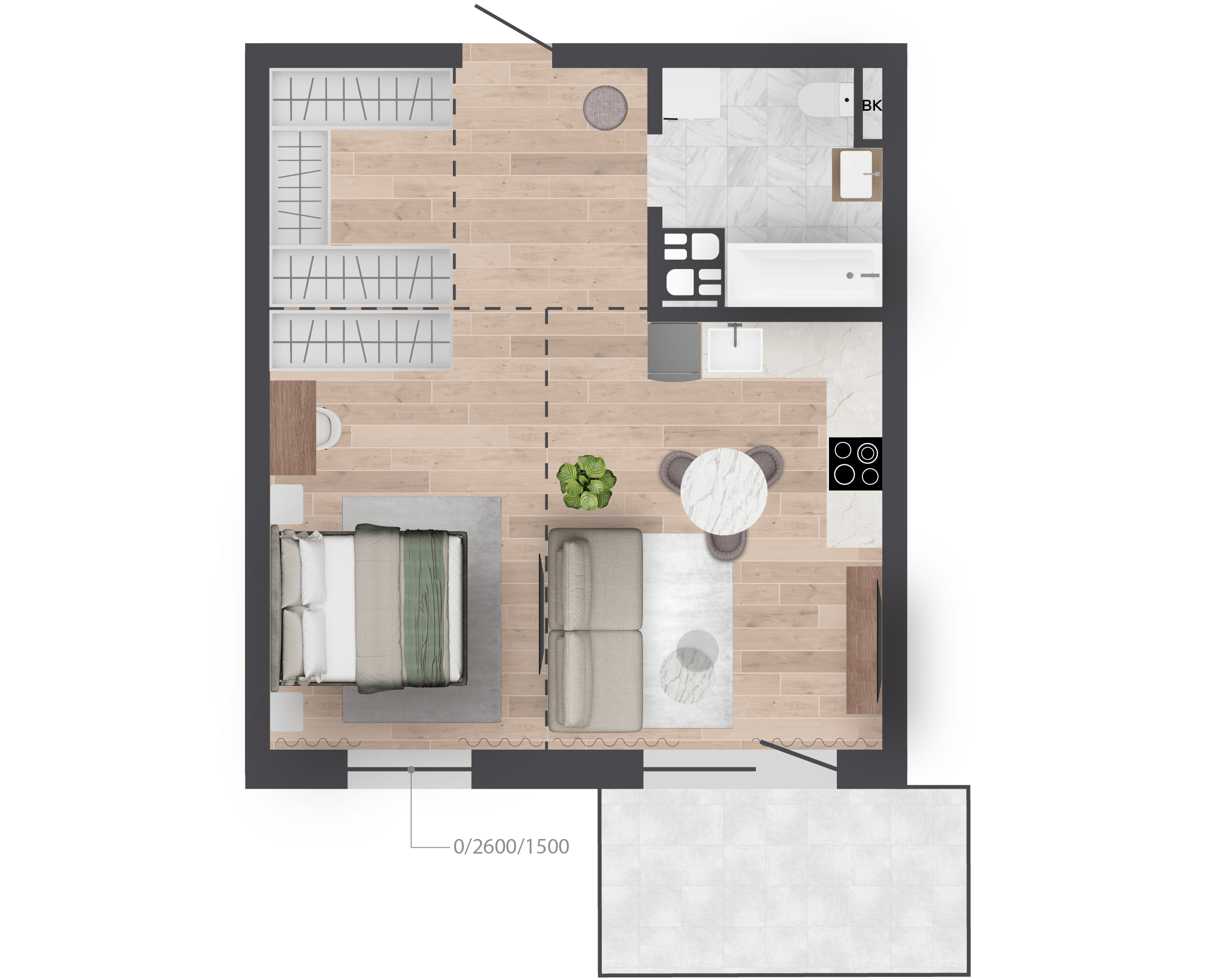 2-комнатная2-комнатная 63.73 м2 1 этаж