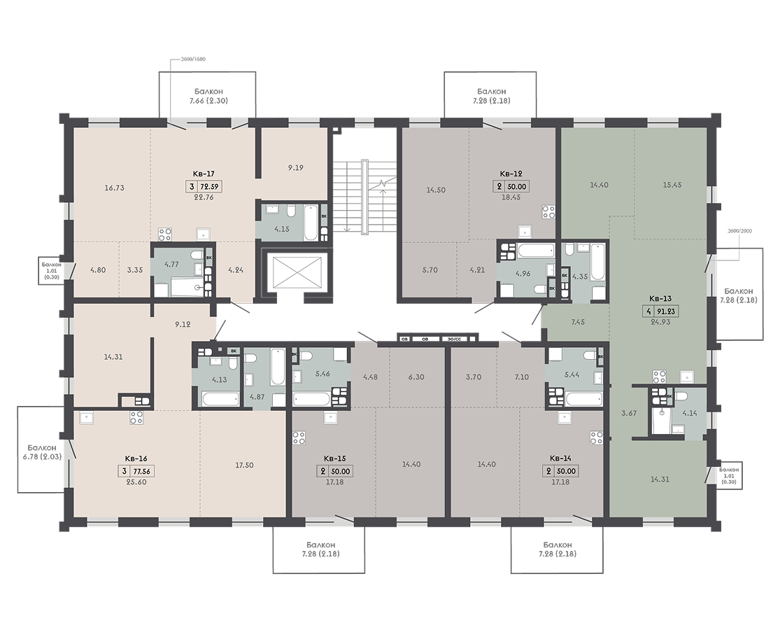 4-комнатная4-комнатная 91.23 м2 3 этаж