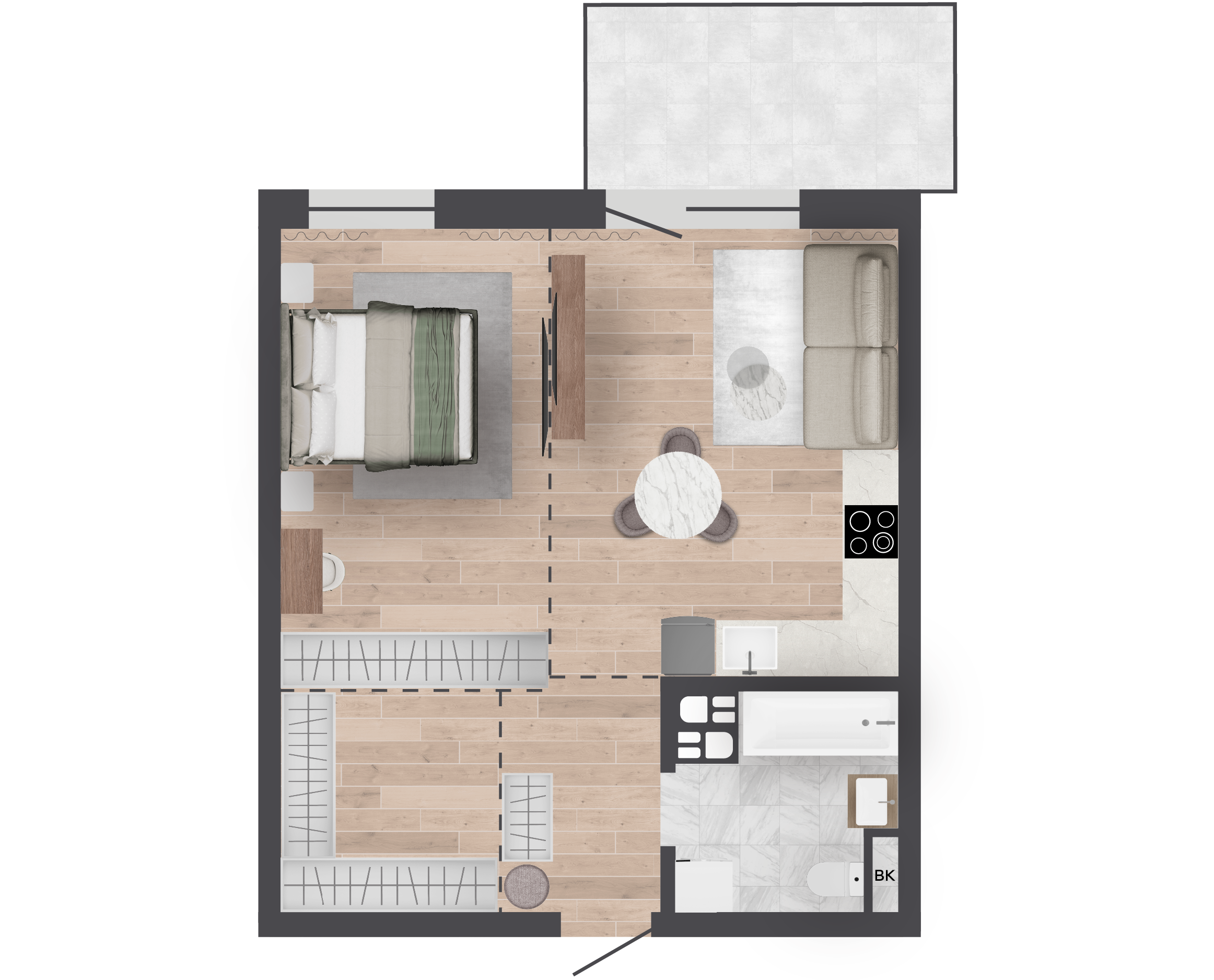 2-комнатная2-комнатная 52.98 м2 1 этаж