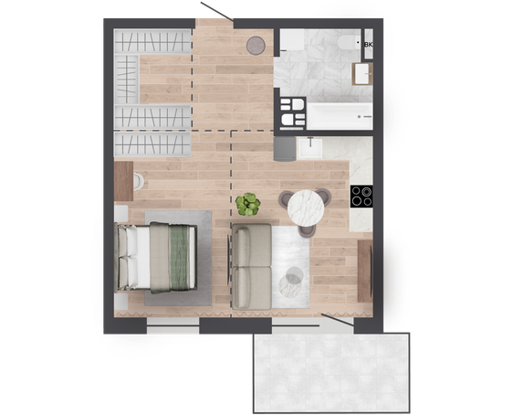 | 50,00 м² Площадь квартиры | 3 м Высота потолков | 7,28 м² Площадь балкона |