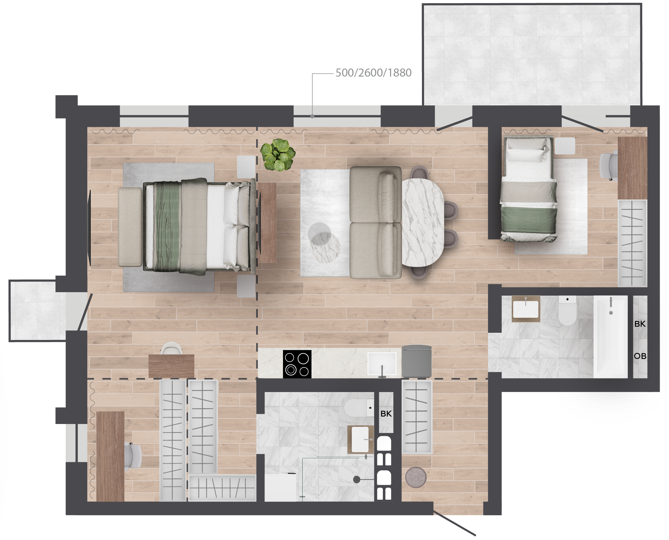 | 72,56 м² Площадь квартиры | 3 м Высота потолка | 7,85 м² Площадь балкона |