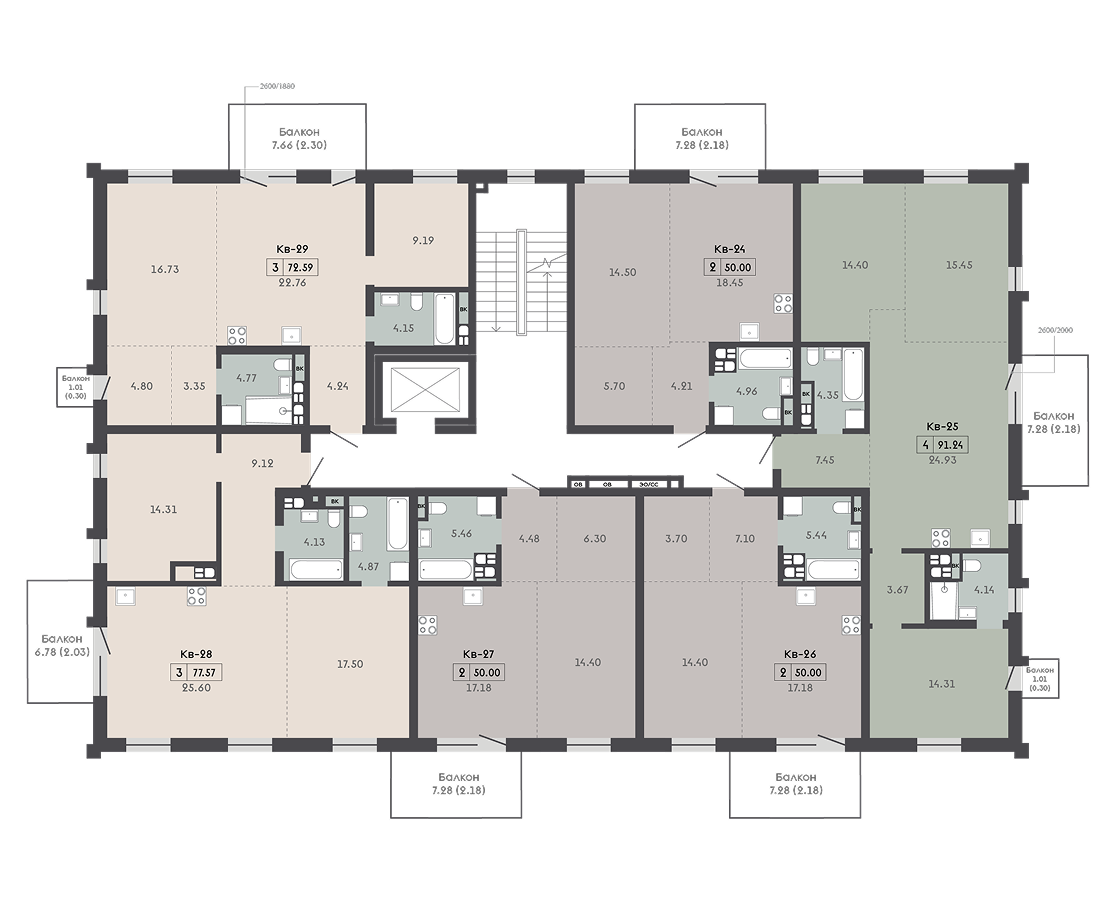 4-комнатная4-комнатная 91.24 м2 5 этаж