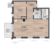 3-комнатная3-комнатная 77.88 м2 6 этаж