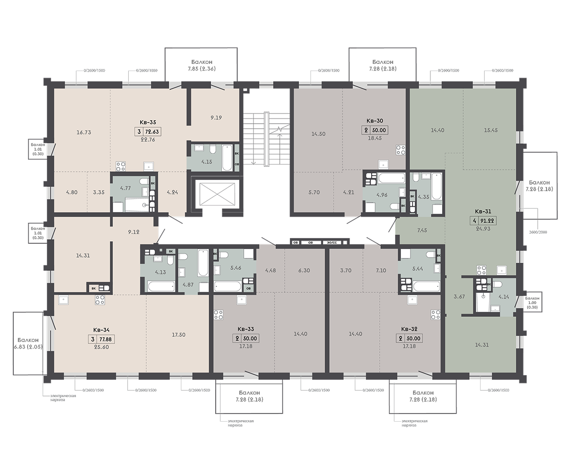 4-комнатная4-комнатная 91.22 м2 6 этаж