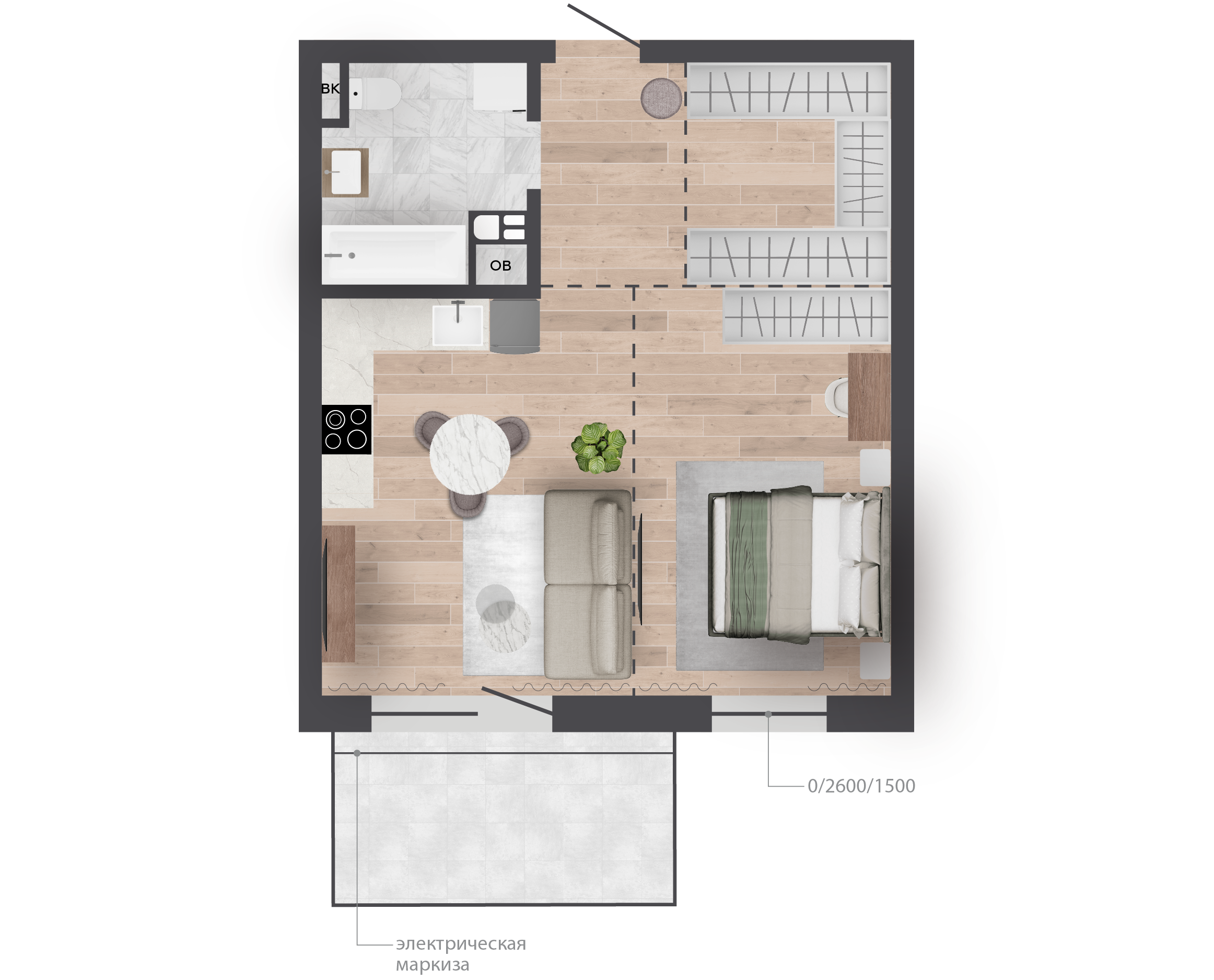 2-комнатная2-комнатная 63.73 м2 1 этаж