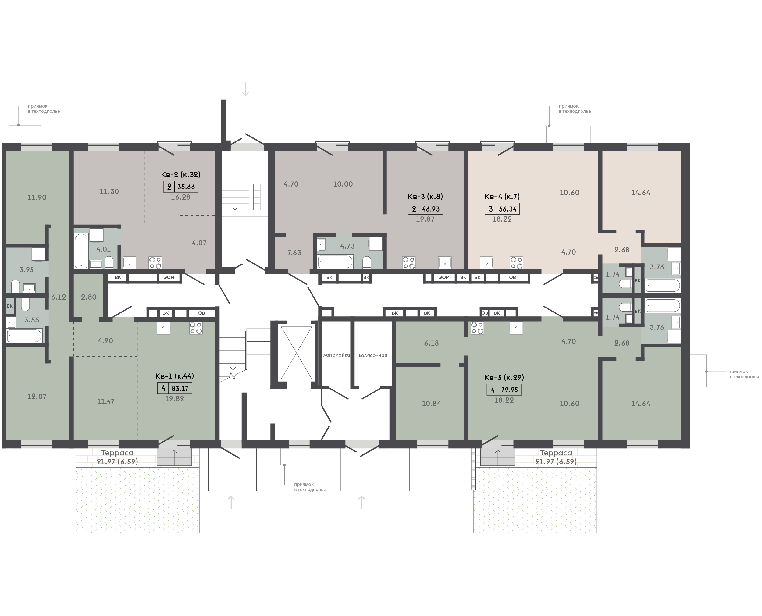 2-комнатная2-комнатная 35.66 м2 1 этаж