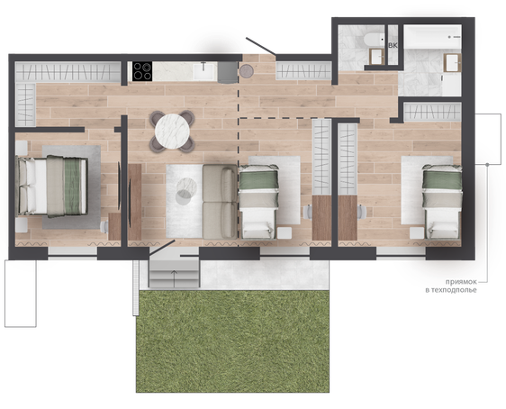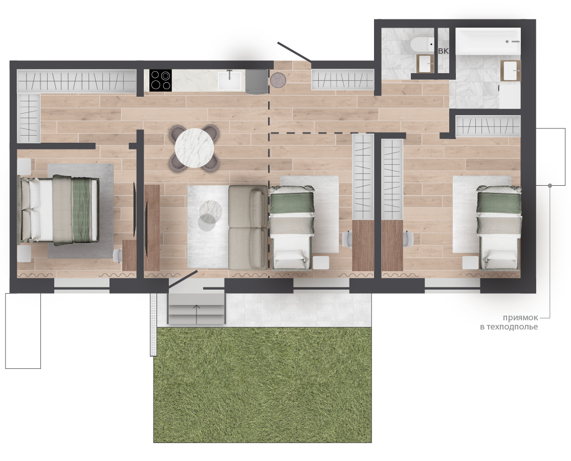 Квартиры на 1 этаже с личными участками-террасами с видом во двор