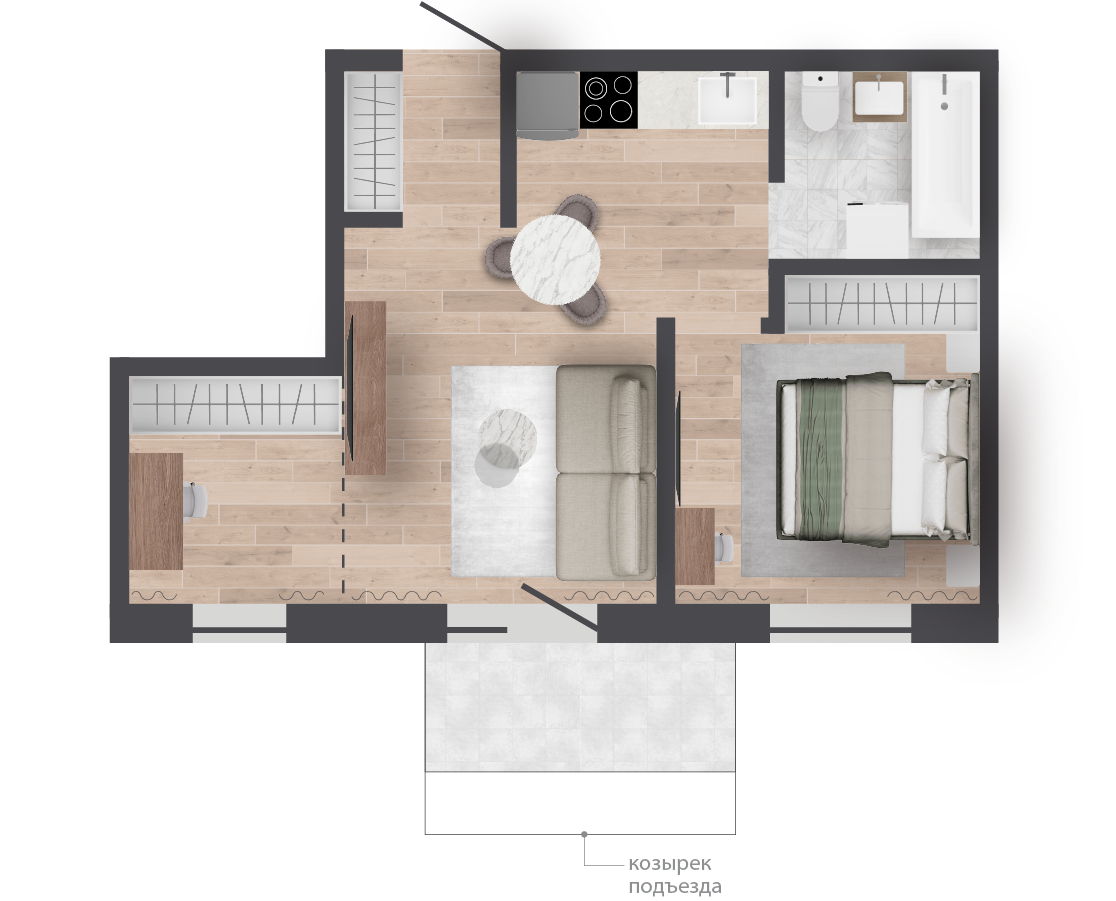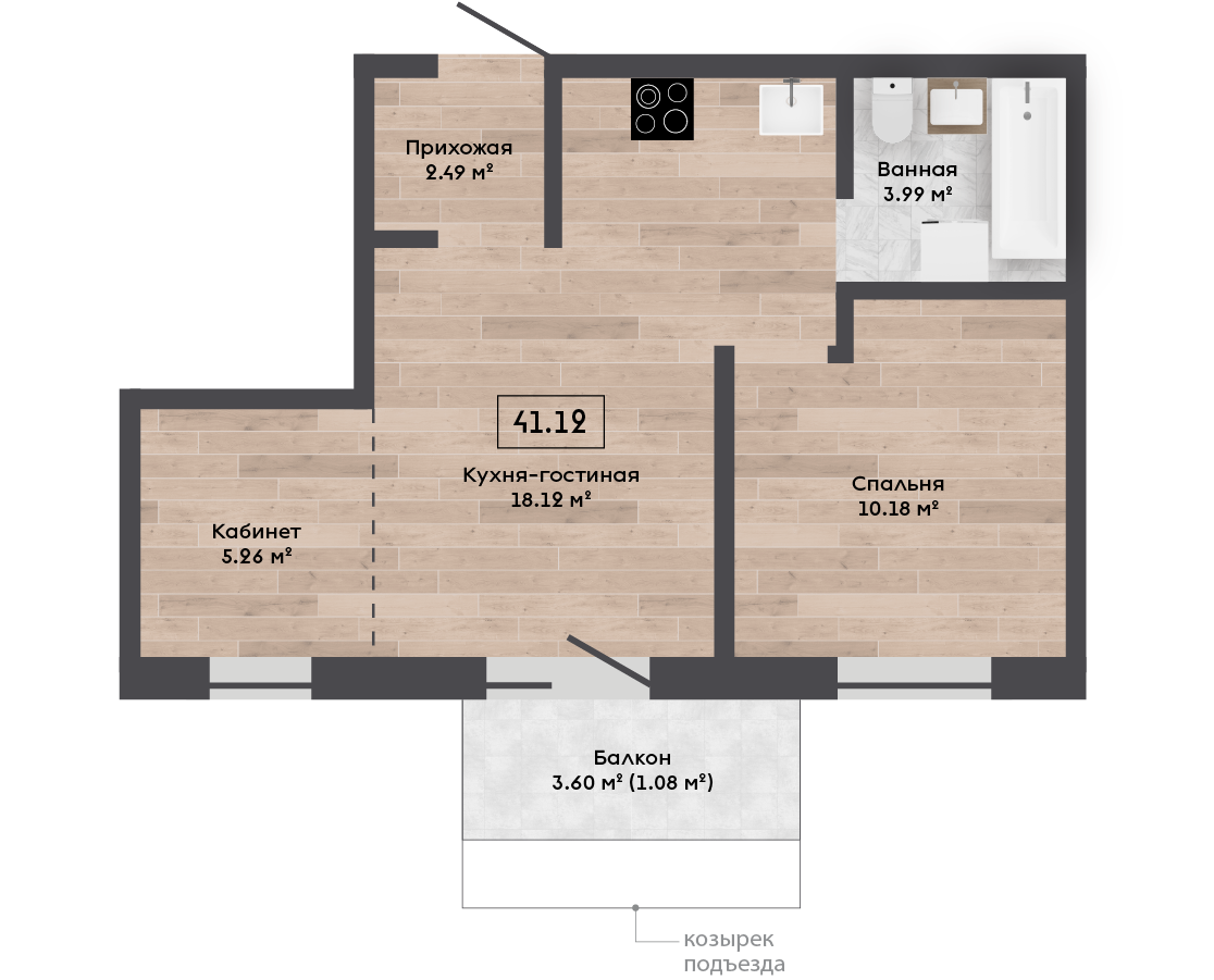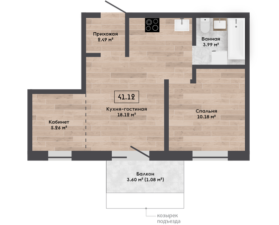 | 41,12 м² Площадь квартиры | 2,7 м Высота потолков | 500 мм Высота подоконной части |