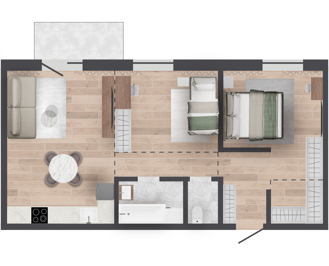 | 61,47 м² Площадь квартиры | 2,7 м Высота потолков | 500 мм Высота подоконной части |