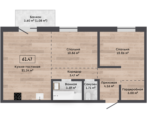 Обязательная покупка при приобретении квартиры| Площадь, м.кв. | 61.47 |